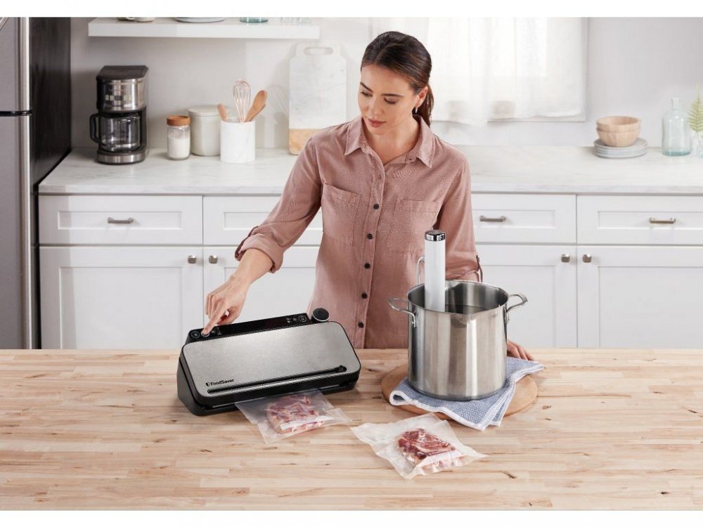 Novinka, která je vybavena až 5 režimy vakuování. Novinkou je také režim Pulze pro vakuování křehkých potravin jako jsou koláče, dorty, ořechy a podobně. Tyto potraviny zavákuuje bez poškození. Samozřejmostí je i vestavěný nůž na rolky, zásobník na role a možnost připojit Fresh kontejnery a množství jiného příslušenství. Systém vakuových baliček FoodSaver chrání čerstvost a nutriční hodnotu jídla, snižuje množství odpadu a pomáhá vám snížit výdaje na stravu. Těsnění jsou co nejvíce vzduchotěsné, aby se zabránilo vnikání kyslíku a vlhkosti do potravy. Vakuová svářečka nabízí možnost výběru z 5 praktických funkcí - suchého a mokrého vakuování, marinování, pulzní vakuování a Sous Vide vakuování. S přístrojem přitom můžete používat také vakuovací dózy, Marinátor a zátky od značky FoodSaver. Jednoduchým stisknutím tlačítka z kapsy odstraníte vzduch a kontrolka LED indikuje, že je utěsnění dokončeno. Systém vakuového utěsnění FoodSaver FFS3190X je instalován horizontálně a je vhodný pro kuchyňky všech velikostí s elegantním prostorově úsporným designem. S vakuovým těsnicím systémem FoodSaver FFS3190X můžete snadno těsnit jídlo jediným dotykovým tlačítkem.Jednoduše vložte kapsa na potraviny do zásobníku v baličce FoodSaver a zavřete jej jednoduchým uzamykacím mechanismem. Zařízení automaticky odstraní vzduch z kapsy stiskem tlačítka. Na displeji můžete vidět, kdy bylo zahájeno vakuum. Sáček je pak automaticky zapečetěné teplem, aby se zachovala čerstvost. Přebytečná kapalina, která vystupuje během vakuového utěsnění, se shromažďuje ve sběrné misce. Vakuovačkou FoodSaver používají profesionální silnou drážkovanou fólii, která umožňuje dokonalé odsátí vzduchu a vytvoření vzduchotěsného spoje. Při takto balených potravinách se prodlouží doba skladování v mrazničkách oproti klasickému balení z 6 měsíců na 2 - 3 roky (maso, zelenina, ovoce). V chladničce se prodlouží doba skladování z jednoho týdne na 6 měsíců. Kapsy ze speciální fólie lze umýt a opakovaně použít. Zmrazené potraviny se mohou v této fólii vařit, rozmrazovat a ohřívat v mikrovlnné troubě. Udržujte své potraviny dlouho čerstvé a zabraňte tvorbě bakterií. Vakuované potraviny mají až několikanásobně delší dobu trvanlivosti než volně skladované potraviny. Proto nečekejte, pokud se vaše potraviny začnou kazit. Vakuová balička FoodSaver FFS006X je investice, která se vyplatí. Šetříte potravinami a v konečném důsledku šetříte i svými těžce vydělanými penězi. Příslušenství v balení: 1 ks - rolky 28 cm mm, délka 2,4 m2 ks - sáček o objemu 3,8 l2 ks - sáček o objemu 0,94 l2 ks - ZIP sáček o objemu 0,94 l2 ks - ZIP sáček o objemu 3,8 l1 ks - Vakuová zátka pro odsávací z příslušenství