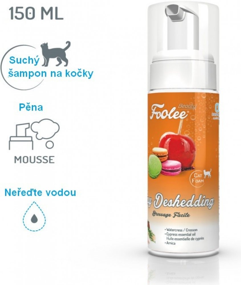 Voní jako jablečné makronky. Foolee Beauty Easy Deshedding šampon byl vyvinut specializovanou laboratoří speciálně pro období línání a výměny srsti koček. Základ tvoří 3 účinné látky: cypřišový olej - arnika - řeřicha