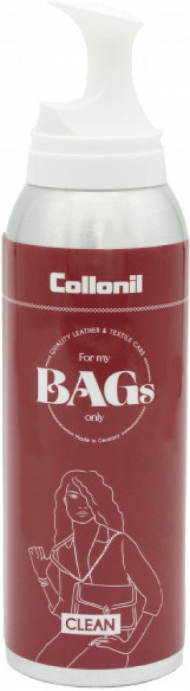 For my Bags only Clean pěna 125 mlExkluzivní, vysoce účinná pěna určená k čištění kabelek, tašek či batohů vyrobených z nejrůznějších materiálů – hladká kůže, nubuk, velur, semiš, nappa, textil, syntetické materiály a jejich kombinace.Návod na údržbu: Držte stříkací hlavu svisle dolů. Nastříkejte pěnu ze vzdálenosti cca. 1 cm na houbu nebo hadřík. Rovnoměrně, krouživými pohyby, rozetřete na kabelku. Poté zbytky pěny či nečistot setřetě čistým, vlhkým hadříkem. V případě potřeby nechte česanou kůži (nubuk, velur, semiš) uschnout a následně ji zdrsněte, např. krepovým kartáčem. Hladkou kůži můžete přeleštit suchým hadříkem či leštícím kartáčkem. Upozornění: Nejprve otestujte kompatibilitu materiálu na neviditelném místě.