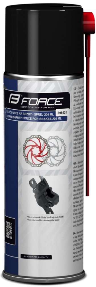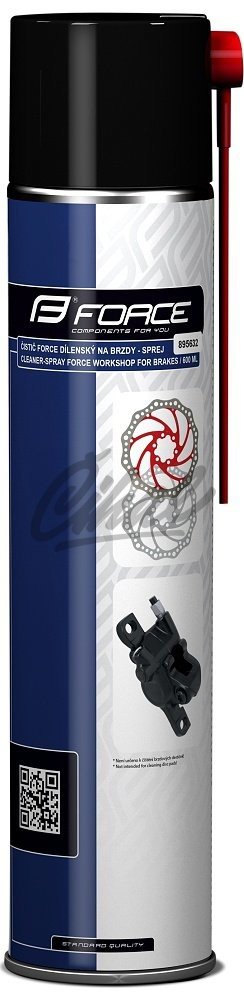 Dílenský čistič Force ve spreji čistí a zároveň odmašťuje. Pouhým nastříkáním dokáže rychle odstranit mastnoty, oleje, nečistoty a brzdové kapaliny. Je vhodný také k odmaštění řetězu před domazáním, k odmaštění ložisek, brzdového obložení a jiných kovových součástí. Sprej má dvojici tenkých trubičkových nástavců pro přesnou práci i ve špatně dostupných místech.