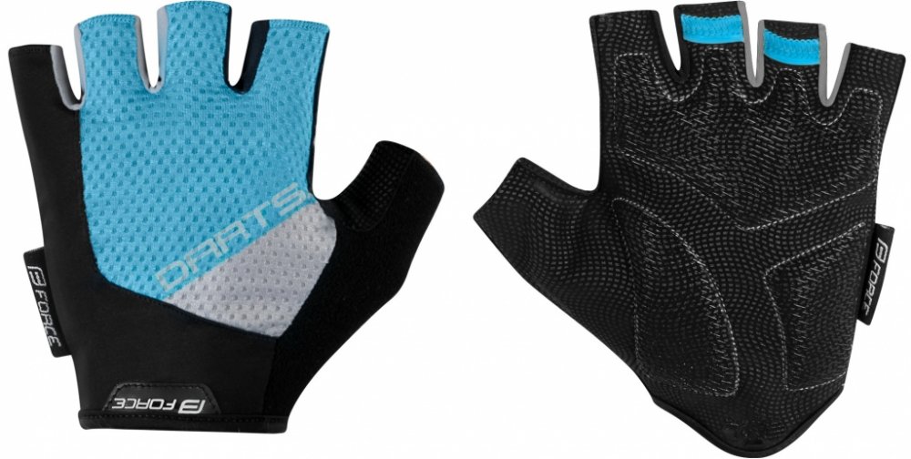 Letní bezprstové, cyklistické rukavice na kolo Force Darts v unisex provedení. Svršek je z velmi vzdušného materiálu. Dlaň z umělé kůže má silikonové protiskluzové ošetření a na exponovaných místech má kvalitní gelové výstelky. Palec je ze savého froté pro otírání potu. Rukavice mají delší lem na zápěstí a jsou bez zapínání. Poutka na prstech slouží ke snadnému stažení rukavic z rukou.