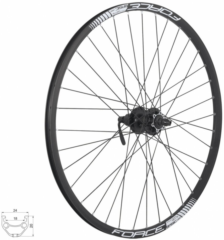 26" zapletené kolo zadnívhodný do páru k přednímu FORCE výpletu art. 702687zadní náboj SH FHM475 pro 6 děrové brzdové kotoučekompatibilní pro SHIMANO MTB kazety 8 - 11 pastorků36 děr, jednoduchý nýt, včetně rychloupínákuotvor pro ventilek: 8,5 mmvýška ráfku: 20 mmmateriál ráfku: Al hliník, černý eloxmateriál drátů: nerez, černémaximální váha jezdce: 130 kghmotnost: 1350 g včetně rychloupínáku