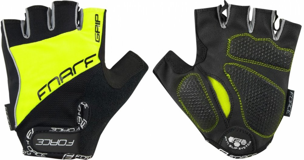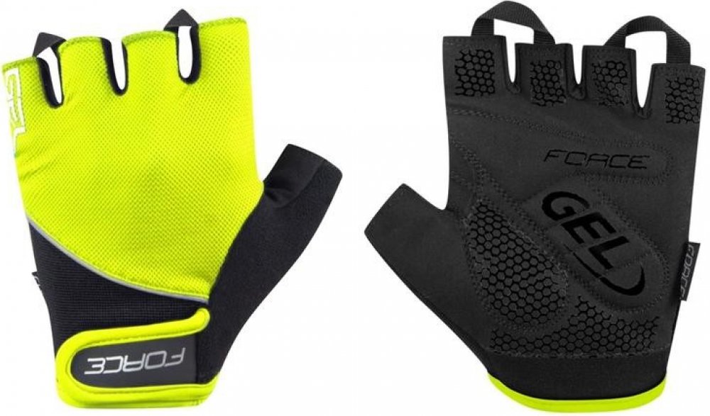 Letní cyklistické rukavice FORCE GEL, fluo-černé XS Cyklistická výbava značky FORCE. Lehké letní cyklistické rukavice unisex s gelovými výstelkami, které sníží tlak na dlaních a umožní lepší pocit z držení řídítek. Vnitřní strana je šita z umělé kůže s protiskluzem. V oblasti úchytu jsou vyztuženy koženkou. Rukavice nabízejí dobře větraný hřbet s panelem z froté pro otírání potu a vyšší pohodlí. N...