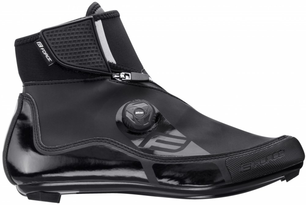Zapínání je na 1 ATOP kolečko, navíc je celé zapínání chráněné nepromokavým zipem. Vnitřní část treter je samozřejmě zateplená, aby nohy byly stále v teple. Špička je chráněna gumovým okrajem proti okopu. Na botě se nachází reflexní prvky pro lepší viditelnost.