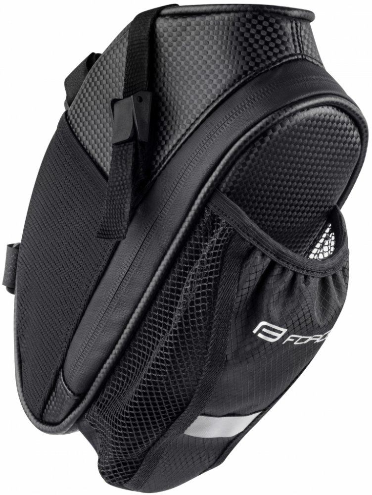 Brašnu „Fuse“ můžete díky pevným popruhům s přezkou a suchými zipy snadno nainstalovat pod sedlo a na sedlovku, nebo z kola lehce sejmout. Je vyrobena z vyztuženého a voděodolného materiálu, velmi dobře drží svůj tvar, má velký objem, který je díky zipu po celém obvodu velmi dobře přístupný a disponuje praktickou síťkou pro umístění a přepravu např. 0,5 l cyklistické láhve. uchycení pomocí popruhů se suchým zipem, síťka na láhev vnitřní přihrádky na doklady a osobní věci reflexní prvky, délka: 8,5 cm , šířka: 7 cm, výška: 25 cm hmotnost: 112 g objem: 1,2 l materiál: polyuretan baleno na kartě FORCE