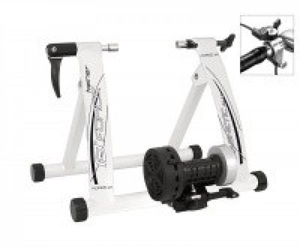 Sada obsahuje: Sadu šroubů pro uchycení kola do stojanu, rychloupínak na vaše kolo, dvě gumové redukce různé velikosti pro uchycení ovladání zatěže na řídítkách.