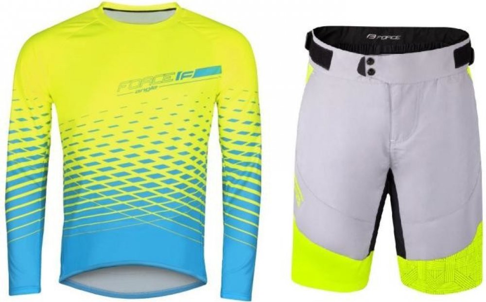 Force MTB ANGLE fluo-modrý dl. rukáv + Force STORM šedo-fluo