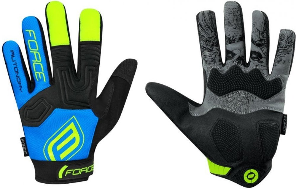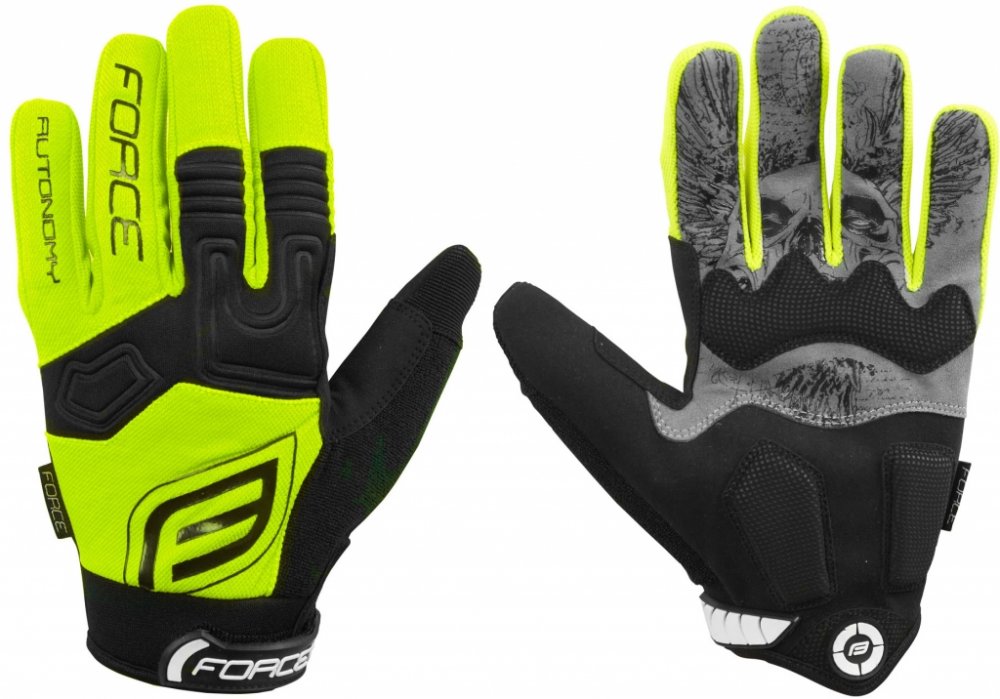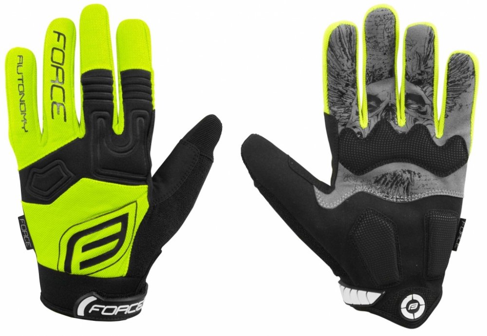 Celoprstové rukavice určené pro MTB, DOWNHILL • vnější strana palce z jemného froté pro otírání nosu