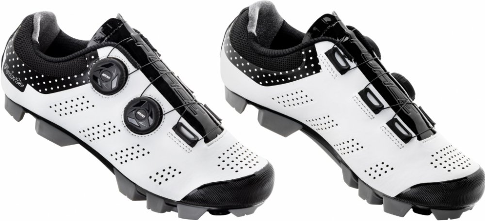 Modely SCORE jsou nejnovějším přírůstkem v naší MTB sekci a zákazníkům nabízí nejen skvělý vyladěný vzhled, ale především dvojitý upínací systém, který drží nohu jezdce ve správné pozici na pedálu pro zajištění optimálního přenosu sil na kliky bez ztrát energie. Vybaveny jsou podešví z nylonového kompozitu, které nabízí vyváženou tuhost.