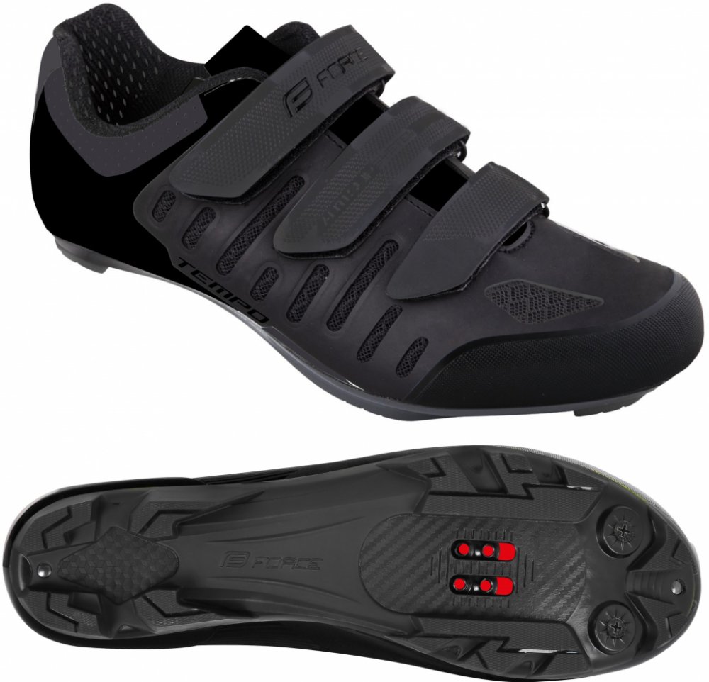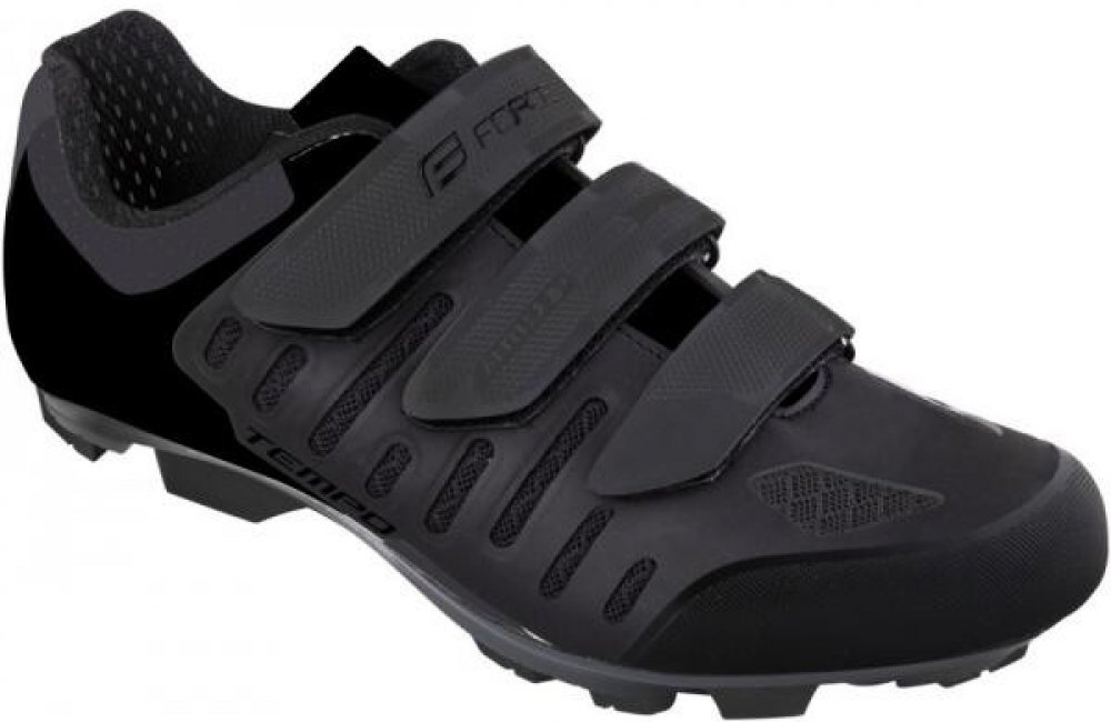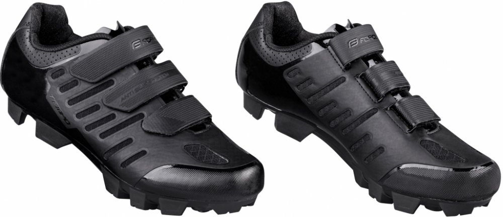 Tretry FORCE MTB TEMPO, barva černá, velikost 44 Velikosti odpovídají standardu civilní obuvi. MTB tretry s anatomickou vložkou. Podešev z nylonového kompozitu. Špička je chráněna gumovým okrajem proti okopu. Vnitřní část je vyrobena z protiskluzového materiálu. SPD kompatibilní. Výměnné hroty s klíčem jsou součástí. Možnost dokoupit náhradní hroty. Zarážky nejsou součástí balení. Dostupné barevné...