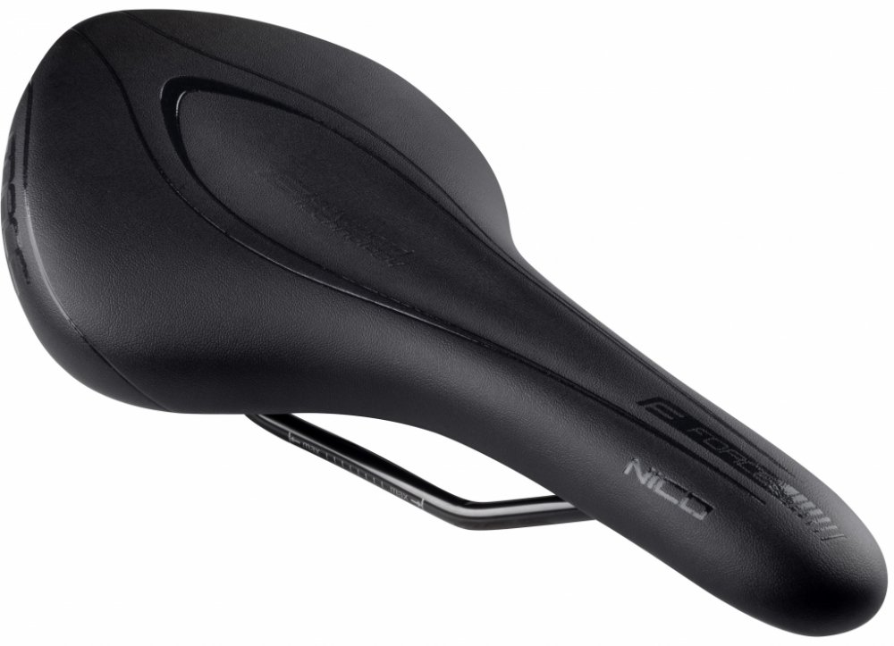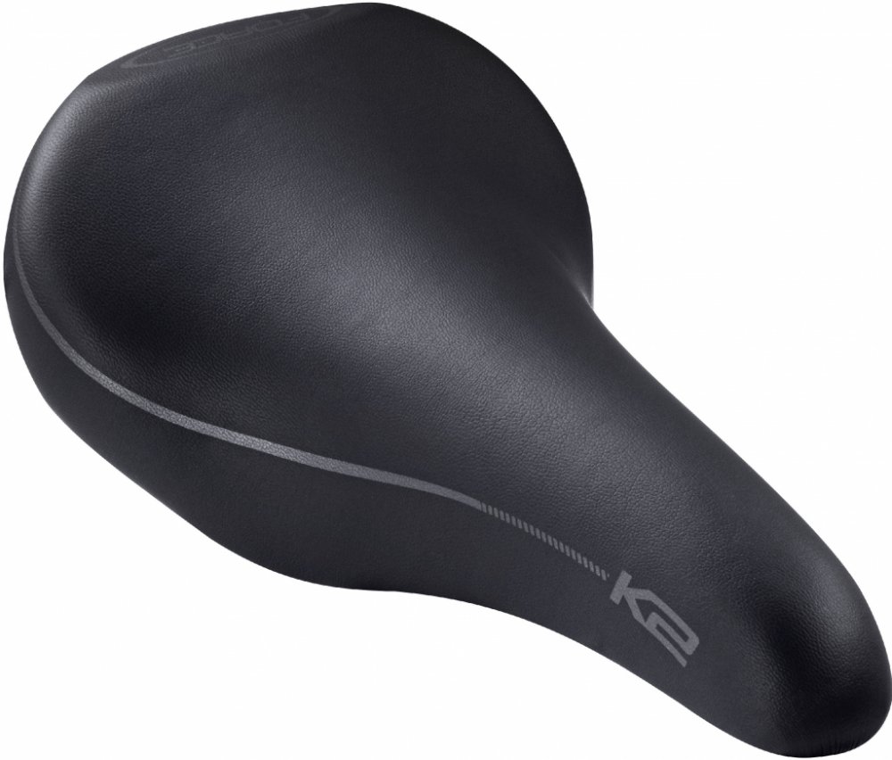 Sportovní, ale zároveň měkčí sedlo rovnějšího tvaru z umělé kůže a komfortním polstrováním na