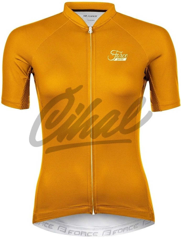 Dámský cyklistický dres na kolo Force Pure Lady s velmi kvalitním celorozepínacím YKK zipem a krátkým rukávem. Má odvětrané panely v podpaží ze síťoviny a elastickou gumu v pase s protiskluzným silikonem. Rukávy jsou zakončeny protiskluzovou lycrou. Tři zadní kapsy a samozřejmostí jsou reflexní prvky.