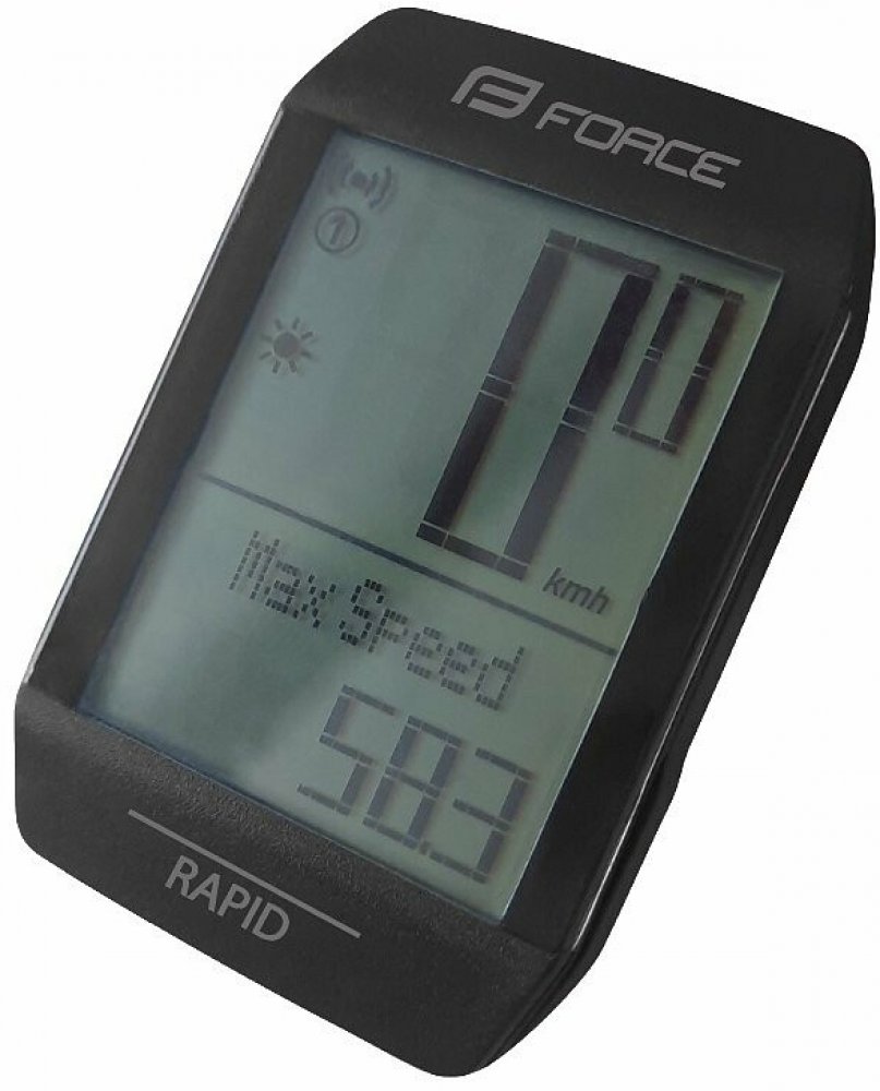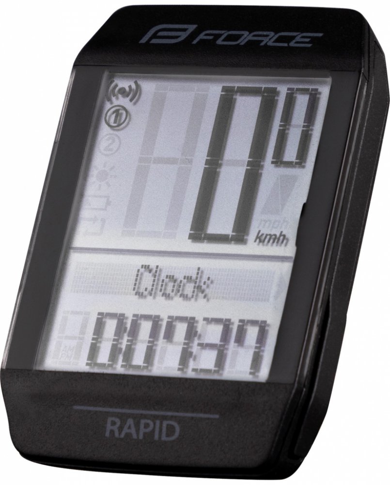 Bezdrátový cyklistický počítač FORCE RAPID s novým typem mikročipu a magnetického senzoru je dokonalým řešením pro cyklisty, kteří hledají vysoce spolehlivý, voděodolný a funkcemi nabitý cyklistický počítač. Tento model, navržený pro maximální všestrannost a přesnost, nabízí 15 základních funkcí pro hloubkovou analýzu výkonnosti, včetně možností pro dvě kola a sledování teploty.