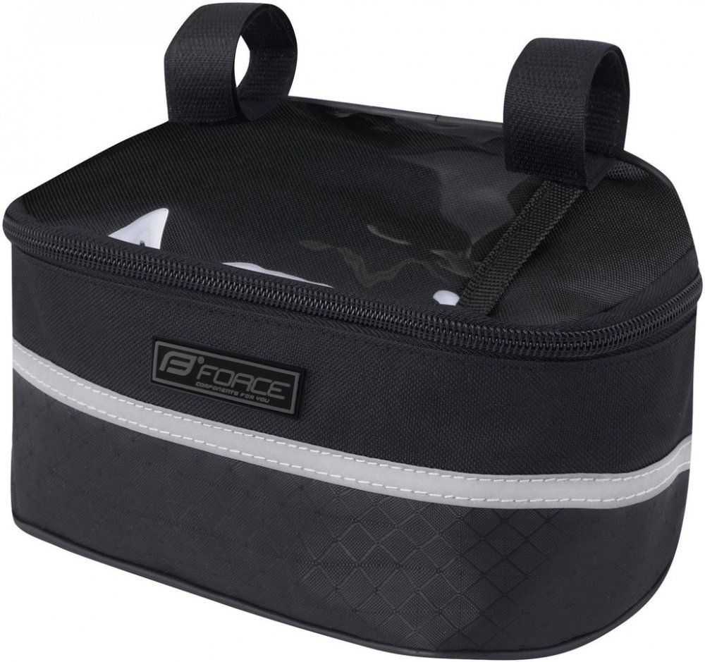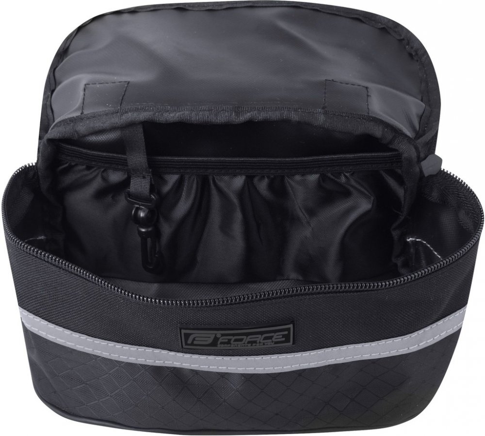 Brašna na řídítka vhodná na každodenní použití i na cykloturistiku. Spolehlivě je uchycena pomocí suchých zipů a dobře přístupná zipem po obvodu. Uvnitř je vybavena karabinou na klíče a z vnější strany reflexními prvky. • Uchycení brašny suchým zipem, vnitřní kapsa