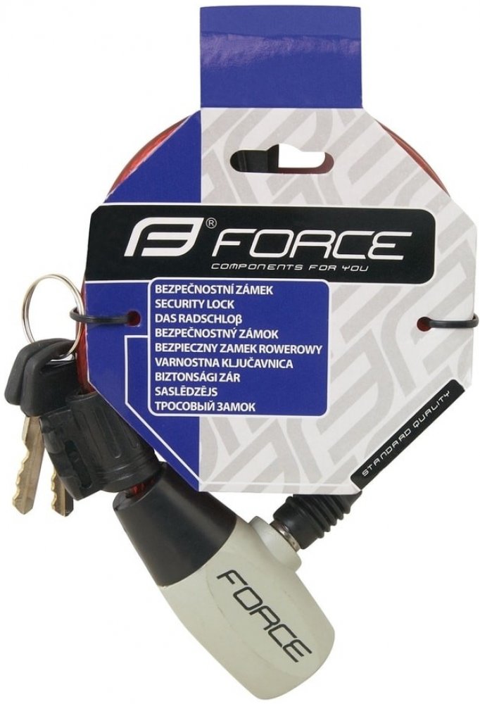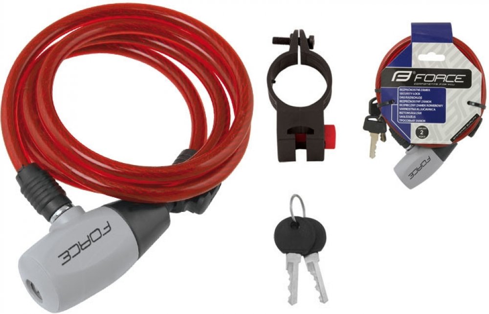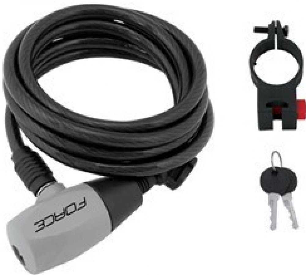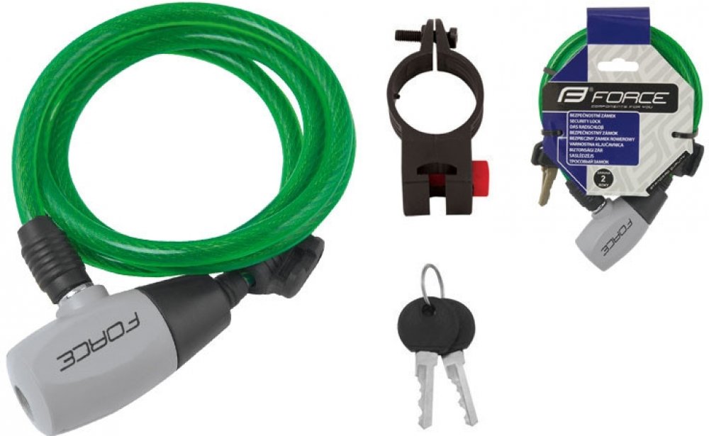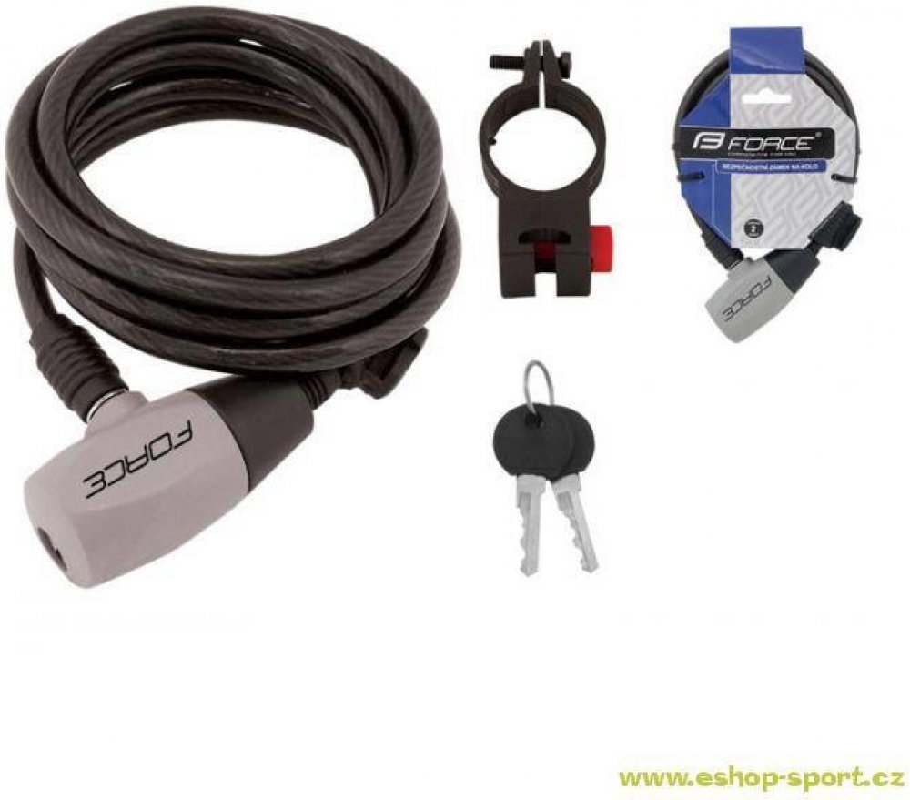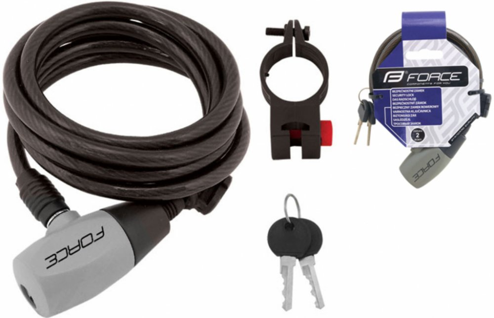 Klíčové vlastnosti produktu Force Ron zámek spirálový s držákem 120 cm/8 mm, černý Lankový zámek na kolo Force se snadno přenáší díky nízké hmotnosti Tento zámek umístíte na rám Součást balení tvoří držák na rám a 2 klíče Délka: 1200 mm Průměr lanka: 8 mm Hmotnost: 245 g