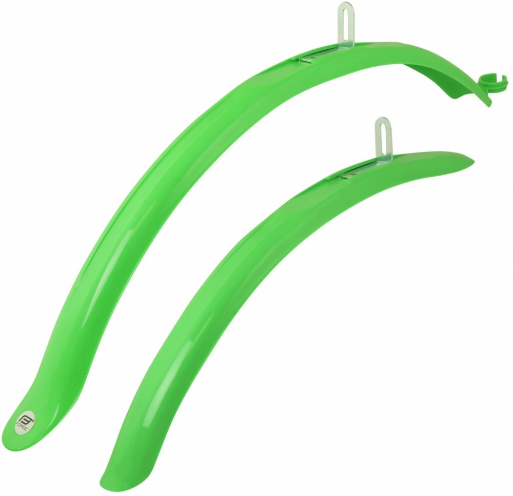 Blatníky FORCE Sport 24"-28" green Plastové blatníky FORCE Sport 24'-28' jednoduše namontujete na většinu dětských kol rozměru 24', na horská kola 26' a 27,5' i na krosová a treková kola 28'. Tyto blatníky mají extra pevný úchyt, který vás nezrydí ani v nejtěžším terénu. Zadní blatník má praktické prodloužení pro zvýšený účinek ochrany proti postříkání zad cyklisty. Blatníky MTB, Trek, plastové b...