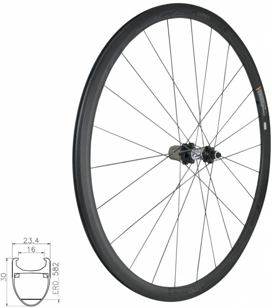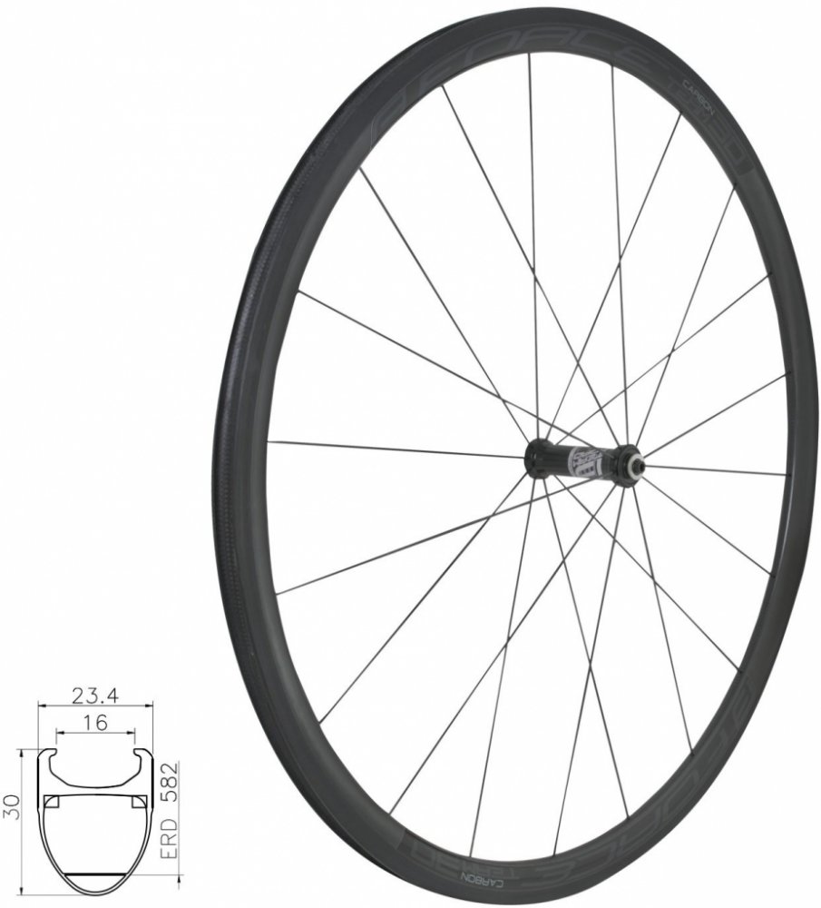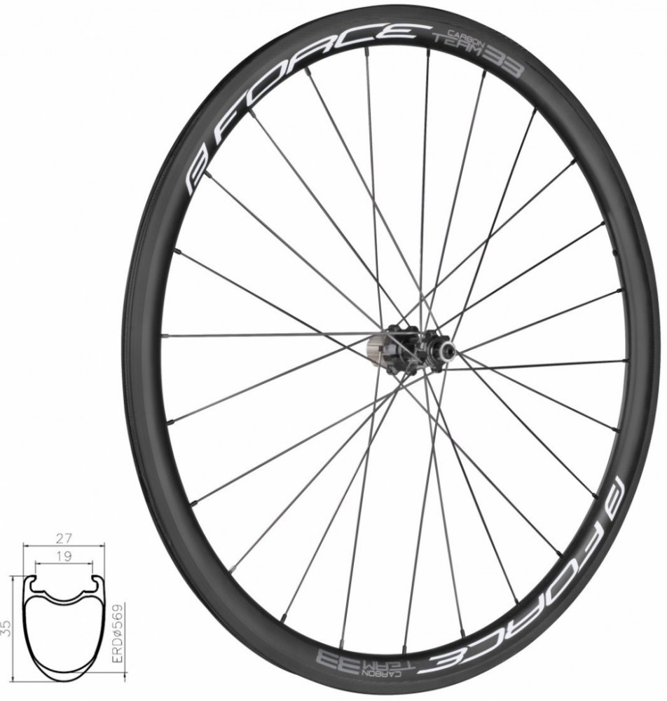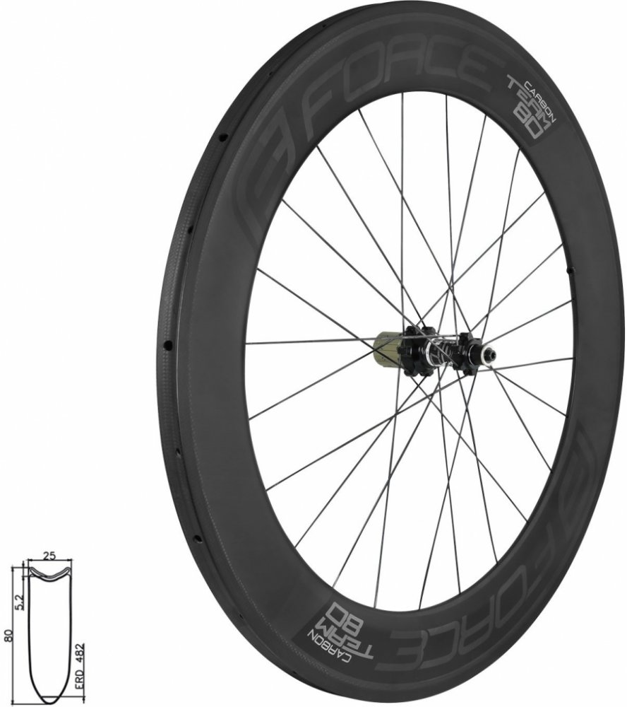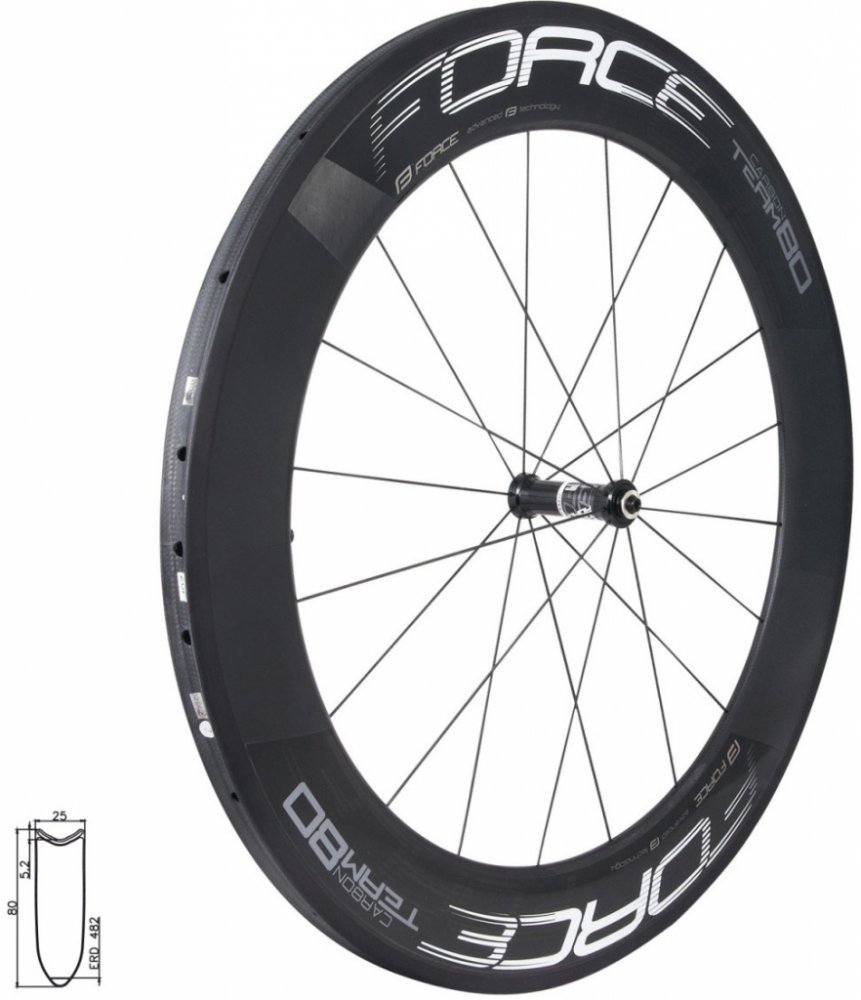 Kolo přední silniční Force Team SP Karbon, výška: 30 mm, 20 děr, šedá nálepka.- ráfek plášťový FORCE KARBON ( art. 70199 )