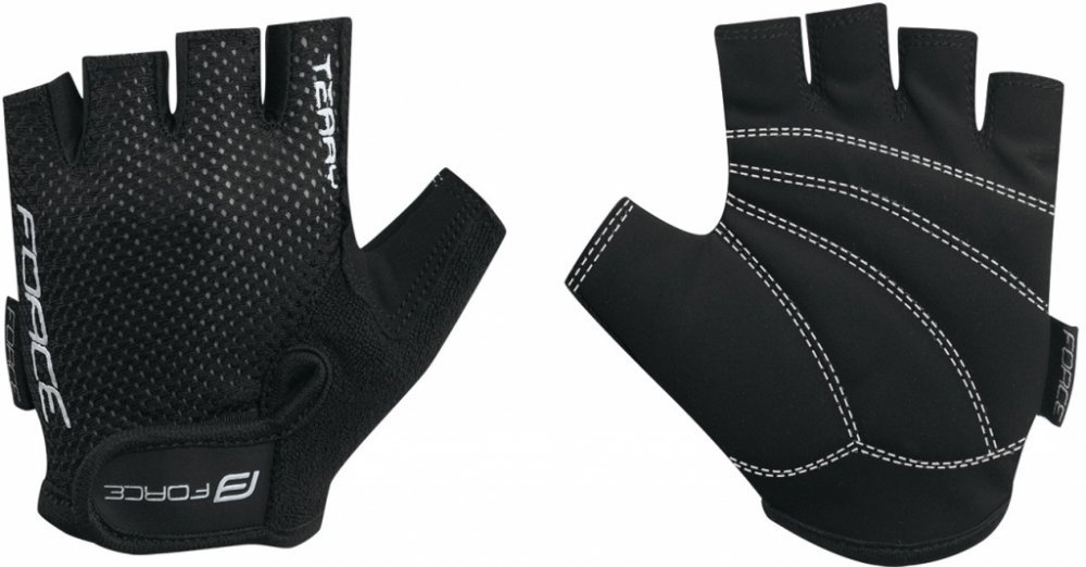 Letní cyklistické rukavice FORCE TERRY, černé XL Lehké letní cyklistické rukavice unisex s pěnovými výstelkami, které sníží tlak na dlaních a umožní lepší pocit z držení řídítek. Vnitřní strana je šita z umělé kůže se silikonovým potiskem. V oblasti úchytu jsou vyztuženy koženkou. Rukavice nabízejí dobře větraný hřbet s panelem z froté pro otírání potu, pro vyšší pohodlí. Na vnější straně palce je...