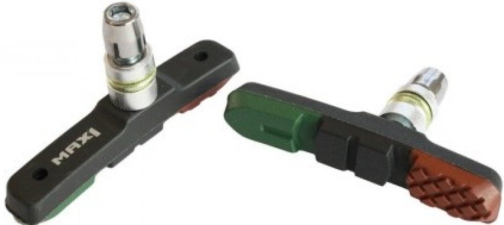 MAX1 jednorázové botky 21595 - brzdové botky pro V- brzdy - Univerzální do každého počasí - s 3-barevnou jednosměsovou brzdovou gumičkou 72mm - zelená část = velká brzdná síla i za mokra - černá část = vysoký všestranný výkon - hnědá část = proti hluku - Kompatibilní se Shimano V-brake. - sada obsahuje 2 kusy (1 pár)