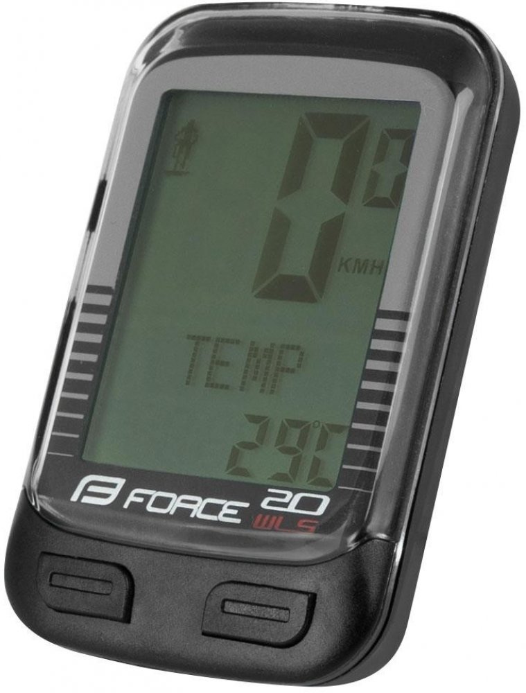 Bezdrátový cyklistický počítač FORCE WLS 20 je nejlepší volbou pro cyklisty, kteří hledají spolehlivý, voděodolný a funkcemi nabitý cyklistický počítač pro sledování svých výkonů. Tento model je navržen pro maximální všestrannost a nabízí 13 funkcí, které umožňují podrobnou analýzu jízdy, včetně možností pro dvě kola a sledování teploty.