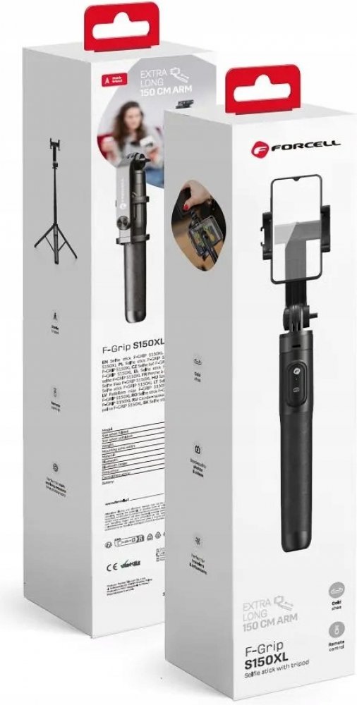 Model: Forcell F- GRIP S150XLVelikost ve složeném stavu: 30,5 cmVelikost ve složení: 150 cmHmotnost: 382 gRozsah upínacího ramene: 60–95 cmMateriál: ABS +PC+HliníkBluetooth: 5.1Dosah Bluetooth: 10 mFrekvence: 2402,0-2480,0 MHzStředová frekvence: 2441,00 MHzBaterie: CR1632 120mAh/3V