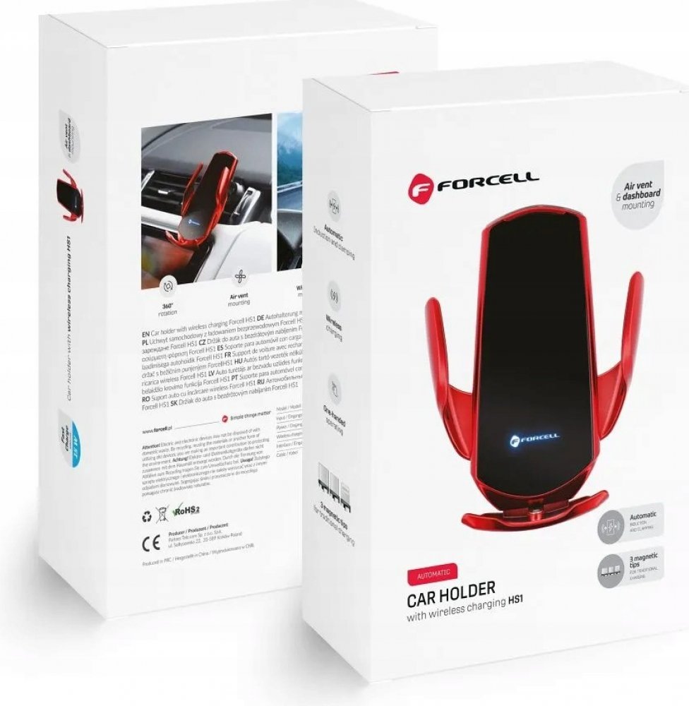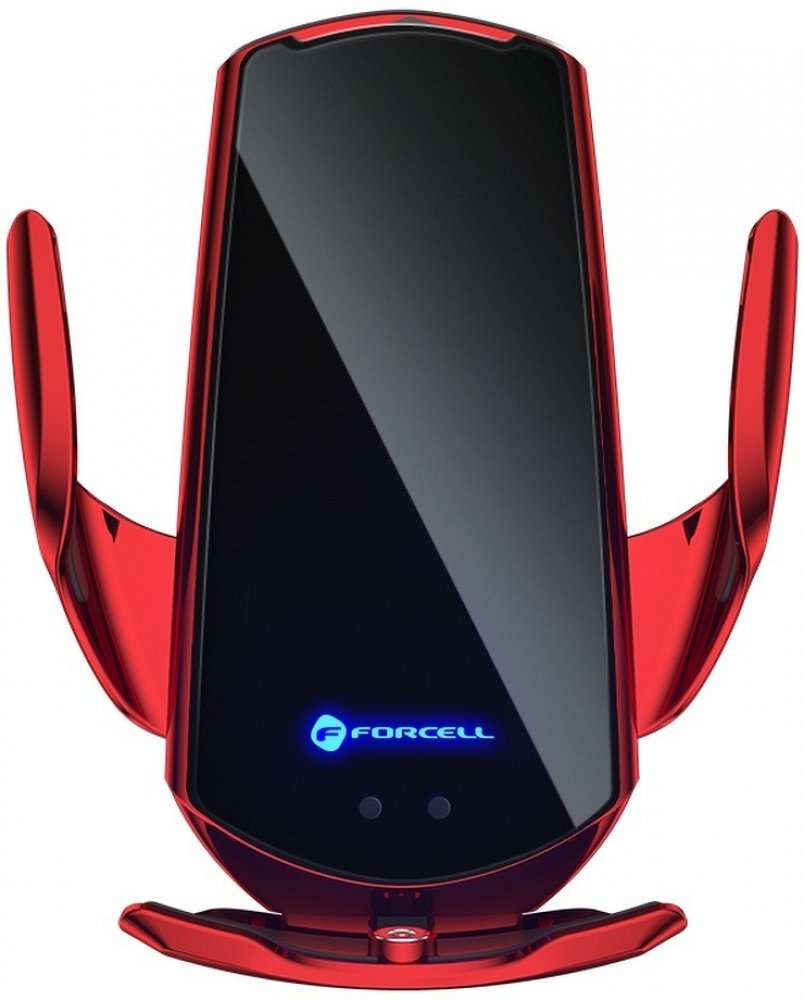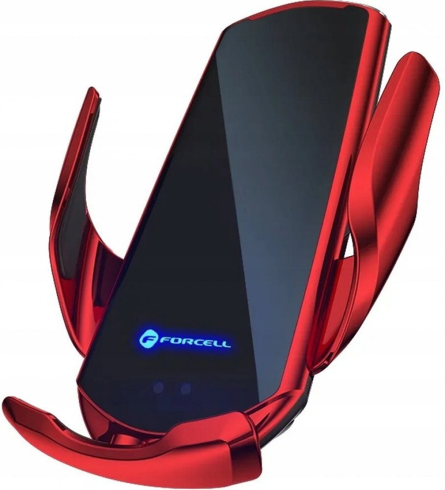 Univerzální držák do auta Forcell HS1 – automatický senzor, bezdrátové nabíjení 15W, montáž do mřížky i na sklo, červený