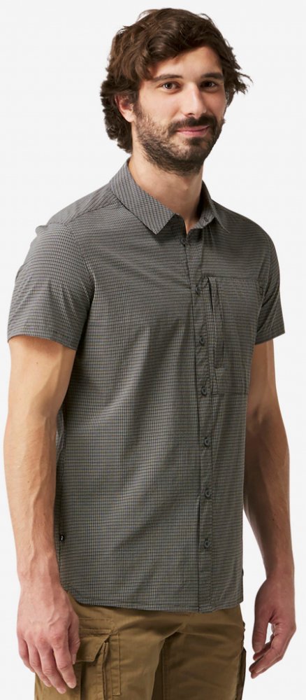 Turistická košile na pohodlné cestování po celém světě za jakýchkoliv podmínek. Látka s elastanem a polyamidem zajišťuje velkou volnost pohybu a omezení zápachu. Košile byla vyvinuta z materiálu „chaîne a trame“. Oproti úpletovému materiálu používanému například na trička, se tkanina „chaîne a trame“ nelepí na pokožku. Když tedy dáte přednost košili před tričkem, volíte prodyšnější oblečení, ve kterém vzduch lépe cirkuluje.|Přáli jsme si košili ani příliš volného, ani příliš těsného střihu: správný střih pro dobrý vzhled a pocit pohodlí v jakékoli situaci.