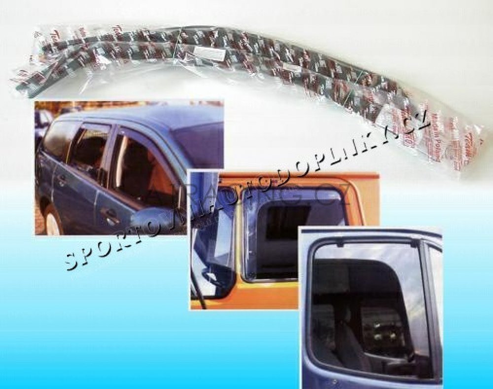 Návod na montáž deflektorů:1. Po dodání deflektorů si hned zkontrolujte obsah balení. Při přepravě se mohou deflektory poškodit, i když jejich zasíláme v odolné krabici s pěnovou výplní. Je třeba zkontrolovat hlavně kraje všech deflektorů.2. Pokud jsou deflektory v pořádku, tak se před instalací ujistěte, zda dané deflektory pasují na okna. Je třeba si každý deflektor Primer k oknu před instalací.3. Doporučuje očistit prostor, kam se budou vkládat ofuky oken pomocí hadříku, aby se oboustranná páska lépe přilepila na těsnění v okně.4. Po očištění odlepte z deflektoru žluté ochranné fólie na oboustranné lepicí pásce.5. Zasuňte jeden konec při zpětném zrcátku a následně druhý konec. Pak opatrně zasunujete deflektor směrem od zpětného zrcátka do drážky.6. Po zasunutí deflektoru zavřete okno a ujistěte se zda někde deflektor nepřekáží oknu při zasouvání. Pokud se stane, že deflektor naráží na okno, tak je třeba do toho místa použít plíšky, které jsou přiloženy v balení. Plíšek se vkládá tak, aby část s ostrým výstupkem byla v těsnění a hladká část na deflektoru. Plíšky můžete použít i když deflektory nikde nenarážela. Budou tím lépe upevněny v těsnění dveří.7. Následné tento postup opakujte při všech oknech a nejlepší nechat pak všechna okna zavřená, aby se oboustranná lepící páska pořádně přilepila na gumové těsnění.8. Po instalaci můžeme deflektory očistit od mastnoty, špíny a otisků rukou pomocí běžných čistících přípravků. přední: zadní: