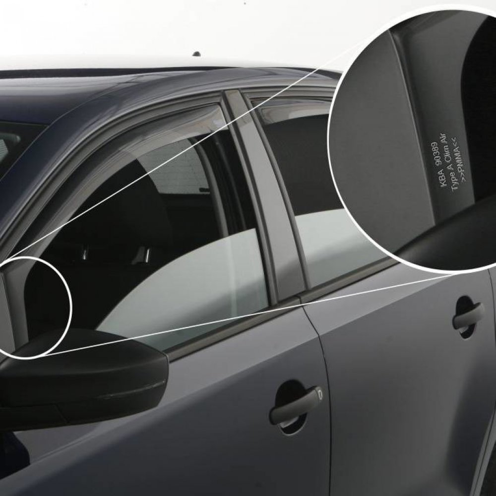 Návod na montáž deflektorů:1. Po dodání deflektorů si hned zkontrolujte obsah balení. Při přepravě se mohou deflektory poškodit, i když jejich zasíláme v odolné krabici s pěnovou výplní. Je třeba zkontrolovat hlavně kraje všech deflektorů.2. Pokud jsou deflektory v pořádku, tak se před instalací ujistěte, zda dané deflektory pasují na okna. Je třeba si každý deflektor Primer k oknu před instalací.3. Doporučuje očistit prostor, kam se budou vkládat ofuky oken pomocí hadříku, aby se oboustranná páska lépe přilepila na těsnění v okně.4. Po očištění odlepte z deflektoru žluté ochranné fólie na oboustranné lepicí pásce.5. Zasuňte jeden konec při zpětném zrcátku a následně druhý konec. Pak opatrně zasunujete deflektor směrem od zpětného zrcátka do drážky.6. Po zasunutí deflektoru zavřete okno a ujistěte se zda někde deflektor nepřekáží oknu při zasouvání. Pokud se stane, že deflektor naráží na okno, tak je třeba do toho místa použít plíšky, které jsou přiloženy v balení. Plíšek se vkládá tak, aby část s ostrým výstupkem byla v těsnění a hladká část na deflektoru. Plíšky můžete použít i když deflektory nikde nenarážela. Budou tím lépe upevněny v těsnění dveří.7. Následné tento postup opakujte při všech oknech a nejlepší nechat pak všechna okna zavřená, aby se oboustranná lepící páska pořádně přilepila na gumové těsnění.8. Po instalaci můžeme deflektory očistit od mastnoty, špíny a otisků rukou pomocí běžných čistících přípravků. přední: zadní: