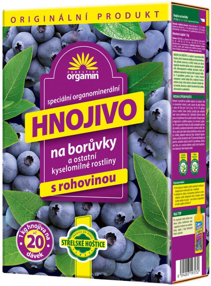Hnojení všech druhů borůvek a jiných kyselomilných rostlin pěstovaných v nádobách i ve volné půdě.