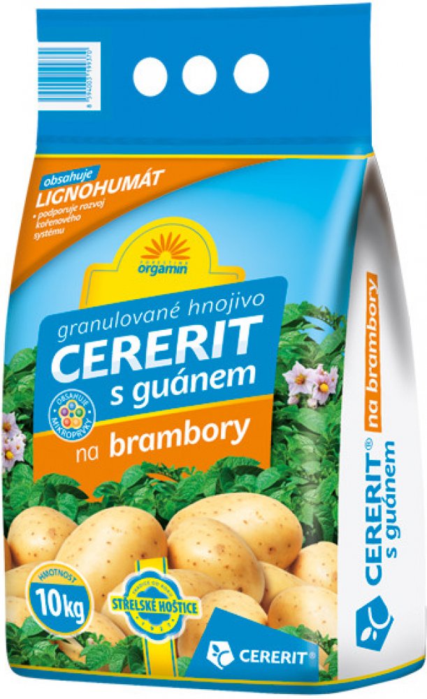 Charakteristika produktu Cererit s guánem a lignogumátem na brambory. Jedná se o ucelenou řadu minerálních hnojiv na bázi osvědčeného hnojiva CERERIT, které jsme obohatili o guáno a lignohumát. Tímto technologickým postupem došlo k dalšímu vylepšení vlastností oblíbeného hnojiva, zároveň i k jejich přizpůsobení jednotlivým rostlinným druhům. Rozsah a způsob použití Hnojivo se aplikuje zapracováním do půdy při výsadbě a při prihnojovanií behem vegetace. Doporučené dávkování je 1,3 kg na 10 m2. Doporučená dávka hnojiva se rovnoměrně rozhodí na plochu a vhodným nástrojem zapraví do půdy.