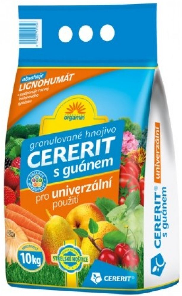 Cererit s guánem a lignohumátem Forestina Orgamin je bezchloridové granulované hnojivo se stopovými prvky určené k výživě ovoce, zeleniny, chmele a okrasných rostlin. Důležitým prvkem obsaženým v tomto hnojivu je lignohumát, který podporuje kořenový systém rostlin. Velmi prospěšná je i čistě přírodní surovina guáno, která se získává z trusu mořských ptáků. Hnojivo se aplikuje zapracováním do půdy.