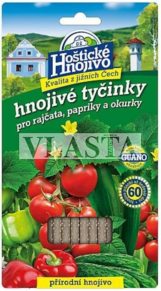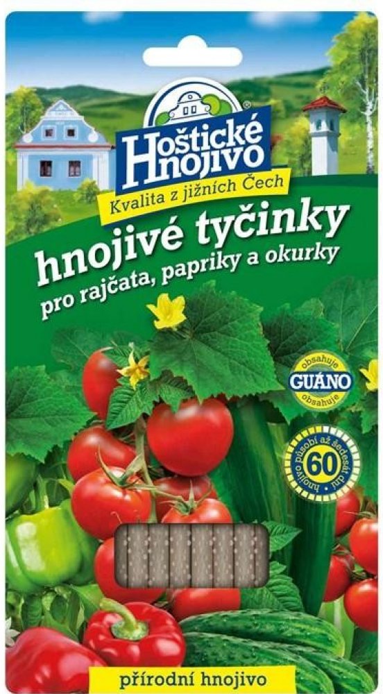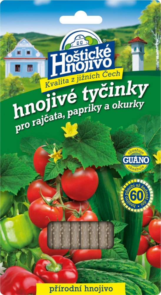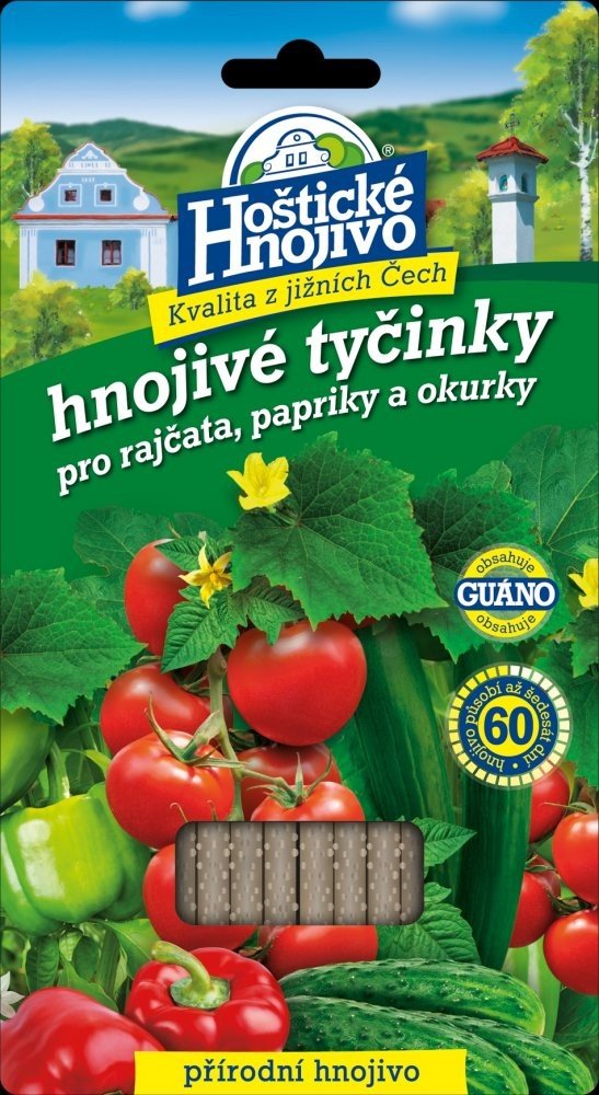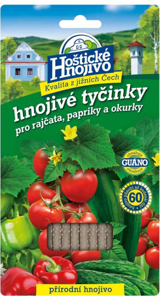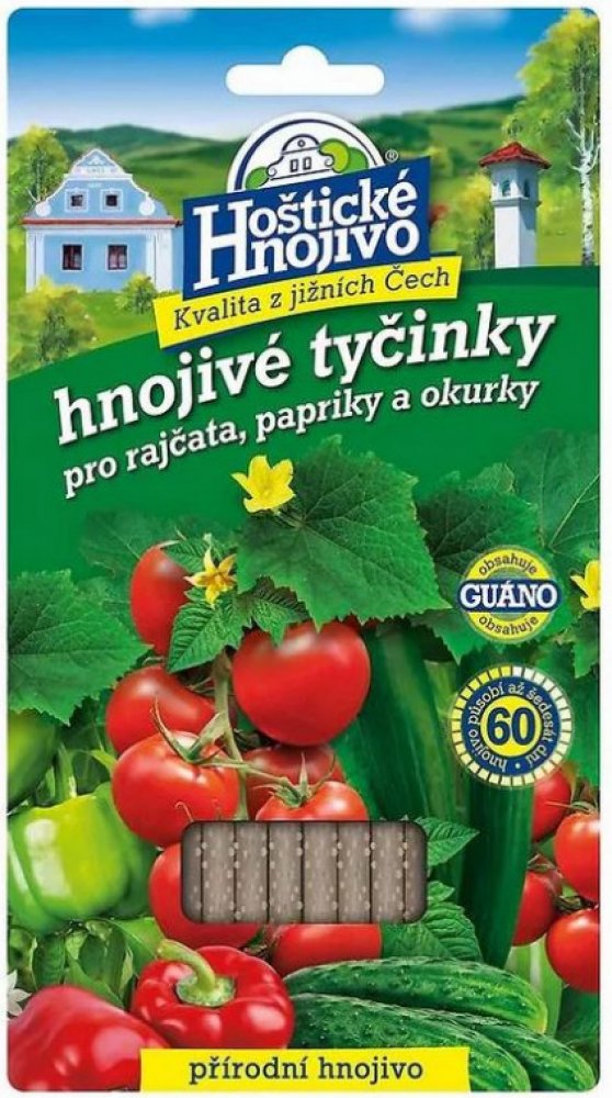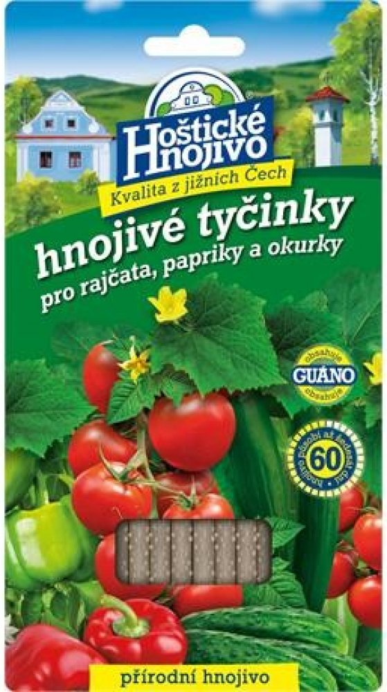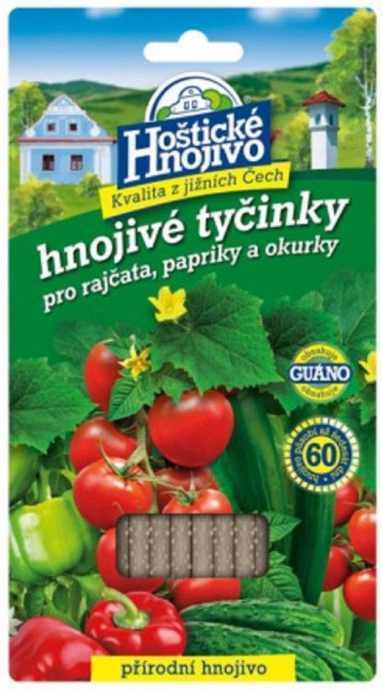 Hnojivové tyčinky jsou vhodné pro pěstování rajčat, paprik a okurek. Hnojivové tyčinky dodávají rostlinám základní živiny a navíc obsahují guáno, pocházející z trusu mořských ptáků, které aktivuje půdní mikroflóru složení: N 14 %, P 7 %, K 4 %
