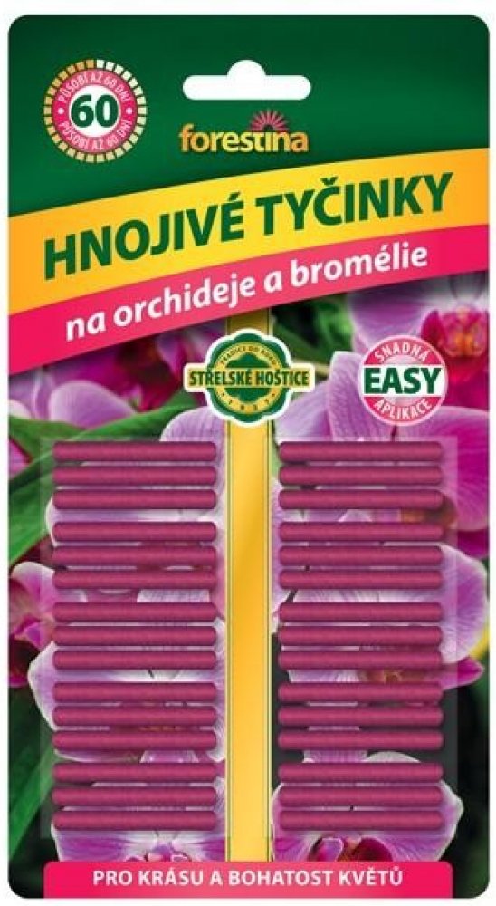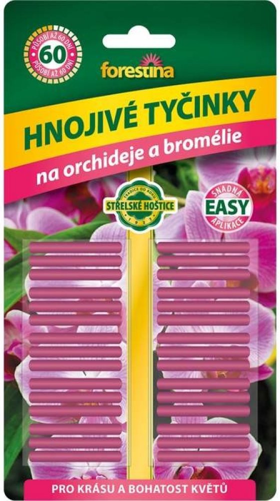 Forestina tyčinková 0.04 kg vícesložková pro pokojové rostliny NPK minerální pro květ pro orchideje pro půdu zapravení do substrátu s postupným uvolněním indoor pěstírna jednoduché — přidej a zalij bez specifikace