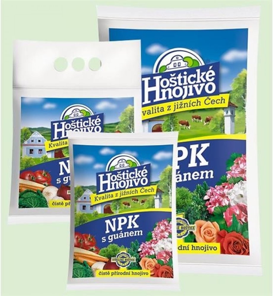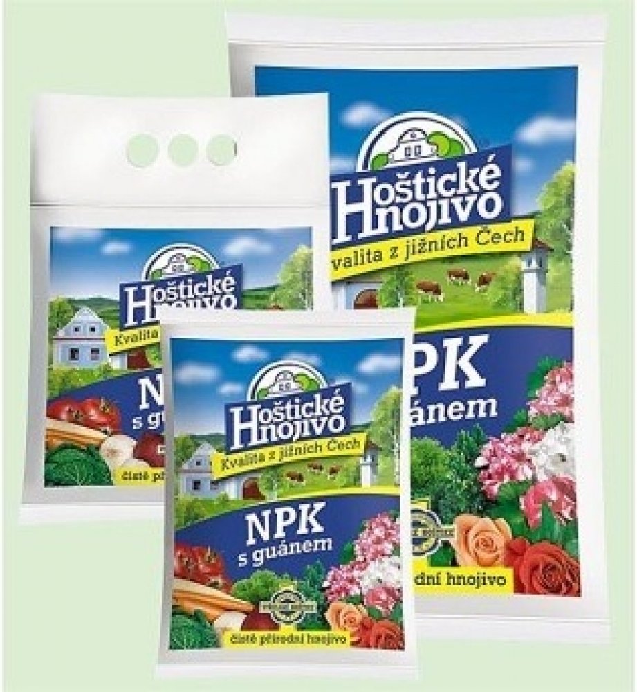 Hoštické NPK je čistě přírodní - organické - hnojivo bez přídavku průmyslově vyráběných složek. Hnojivo obsahuje vedle základních zdrojů živin NPK i přírodní guáno, pocházející z trusu mořských ptáků a další stopové prvky. Hodí se nejen pro univerzální použití v celé zahradě, ale obzvláště pro zdravou výživu ovoce a zeleniny. Je rovněž velmi vhodné k základnímu vyhnojení půdy buď na jaře, nebo při její podzimní přípravě.
