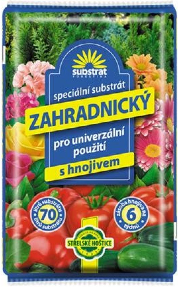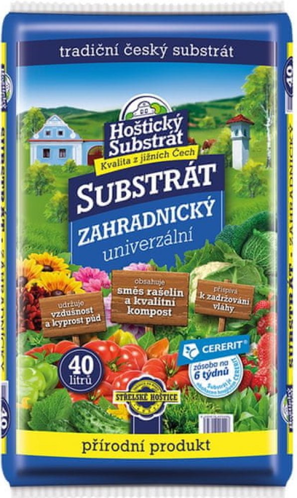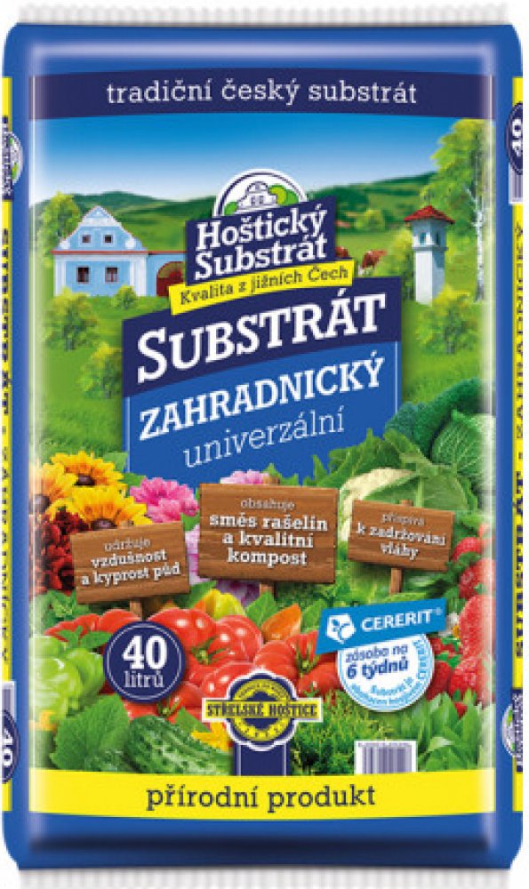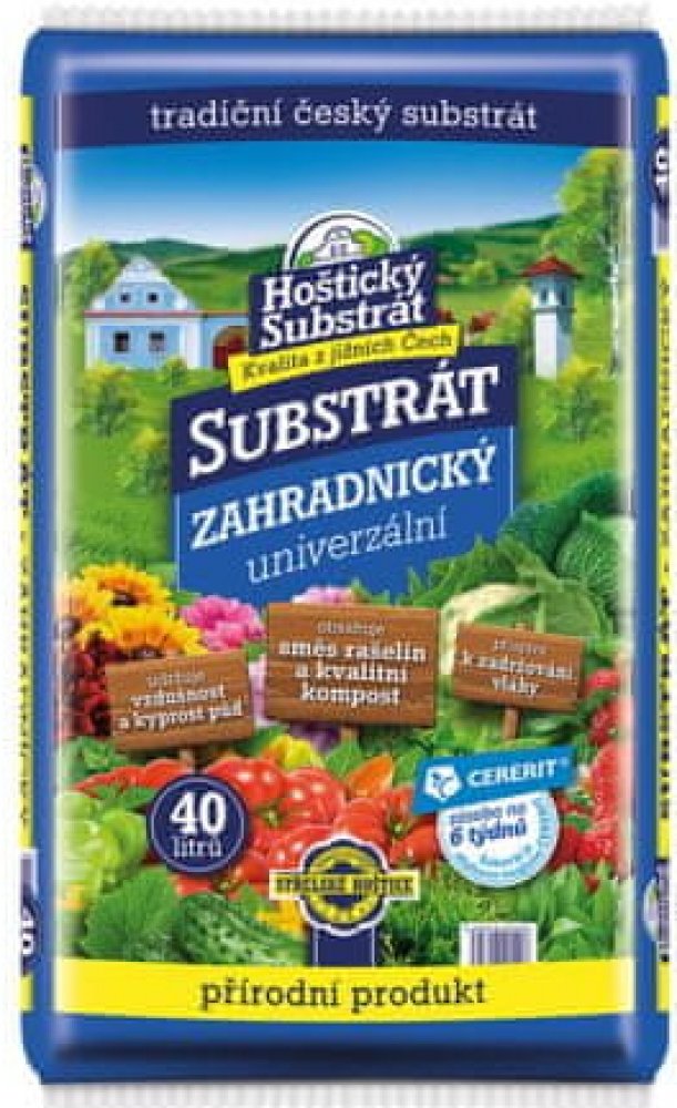Zahradnický Hoštický substrát s cereritem je prvotřídní směs určená k pěstování široké škály zahradních rostlin. Obsahuje cererit, což je speciální hnojivo obohacené o základní živiny a stopové prvky, které podporují zdravý růst rostlin, bohaté kvetení a vysokou úrodnost. Díky svému pečlivě vyváženému složení poskytuje substrát ideální podmínky pro pěstování zeleniny, okrasných rostlin, bylin a dalších zahradních kultur.