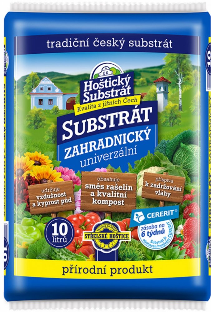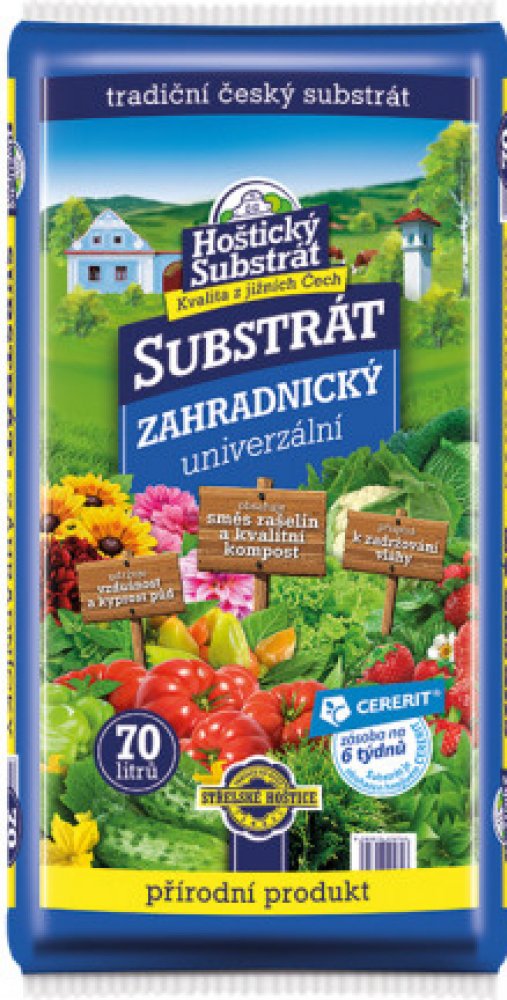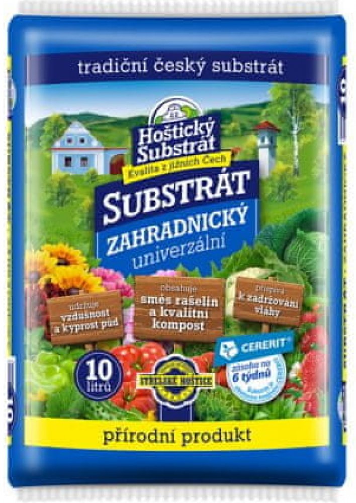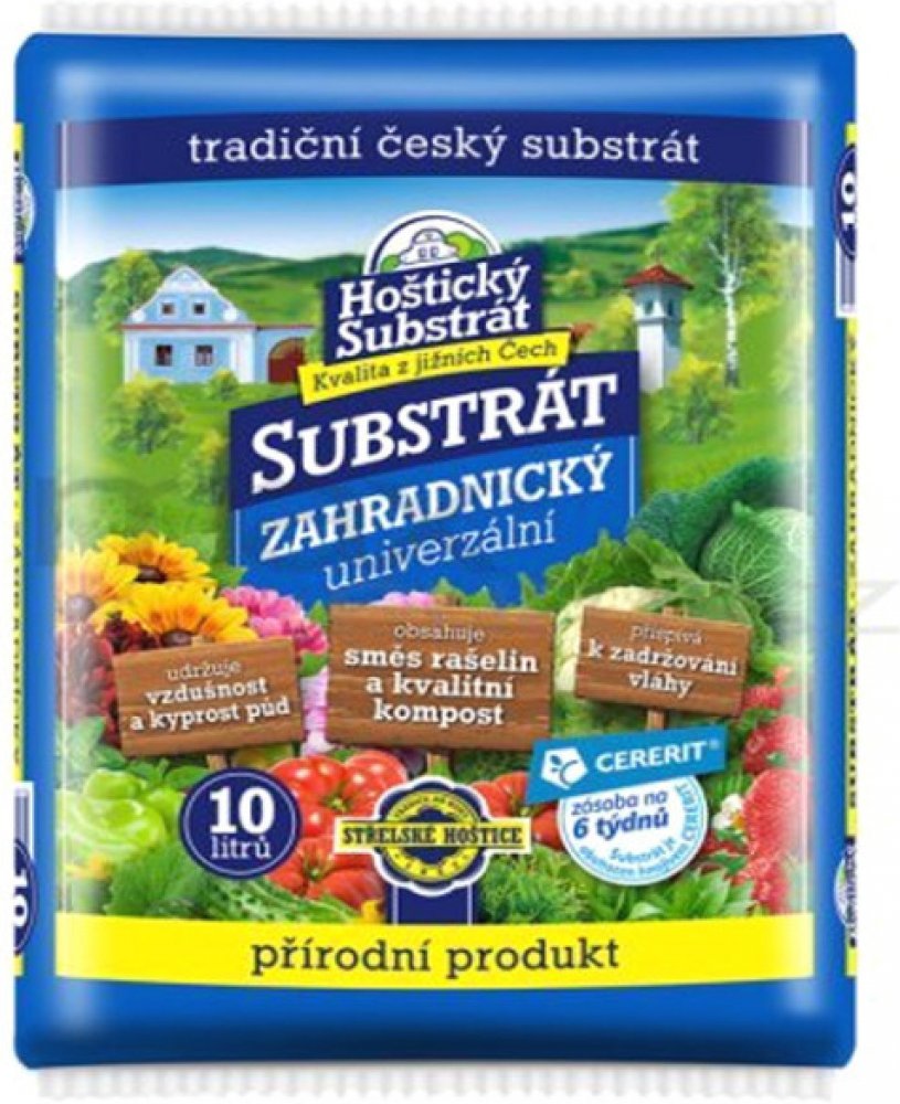 Hoštický zahradnický substrát je vyroben ze směsi světlé a tmavé rašeliny, kvalitního vytříděného kompostu a obsahuje minerální vícesložkové hnojivo CERERIT.