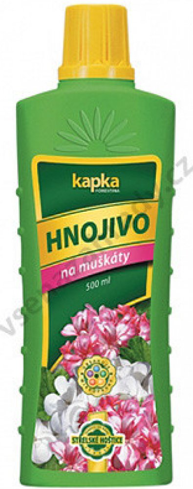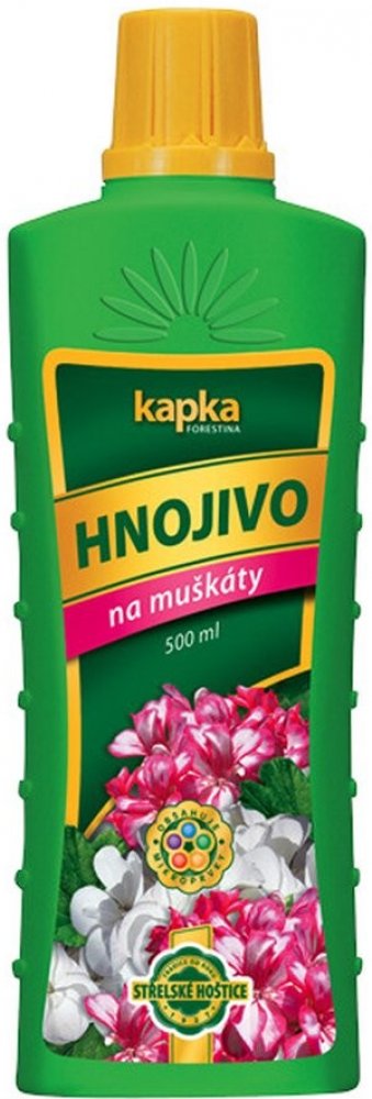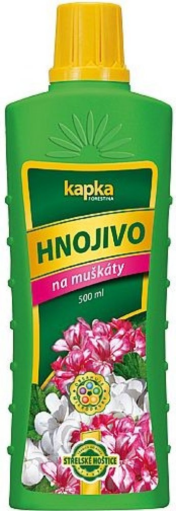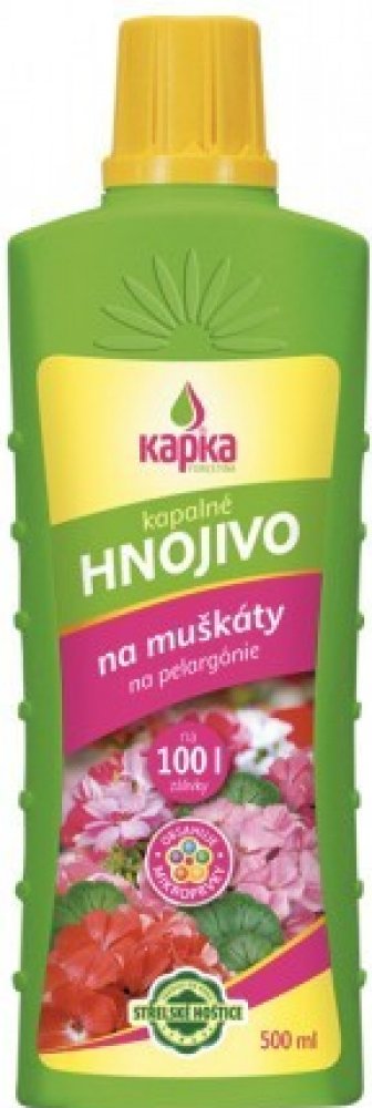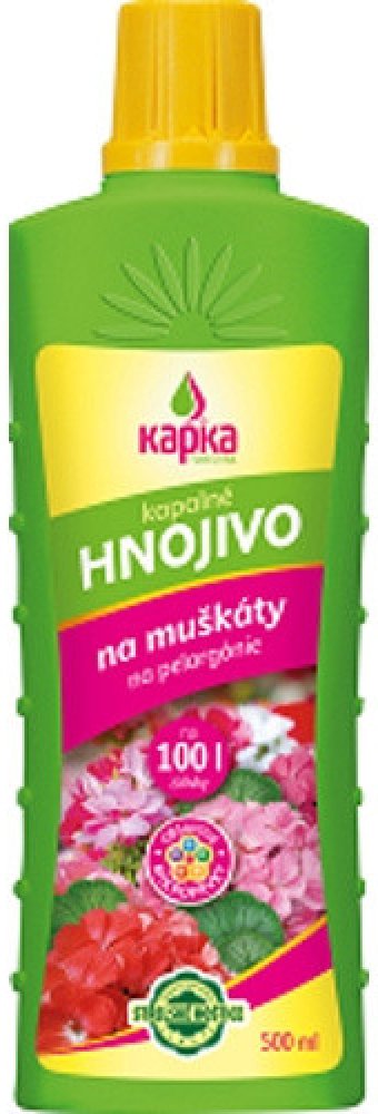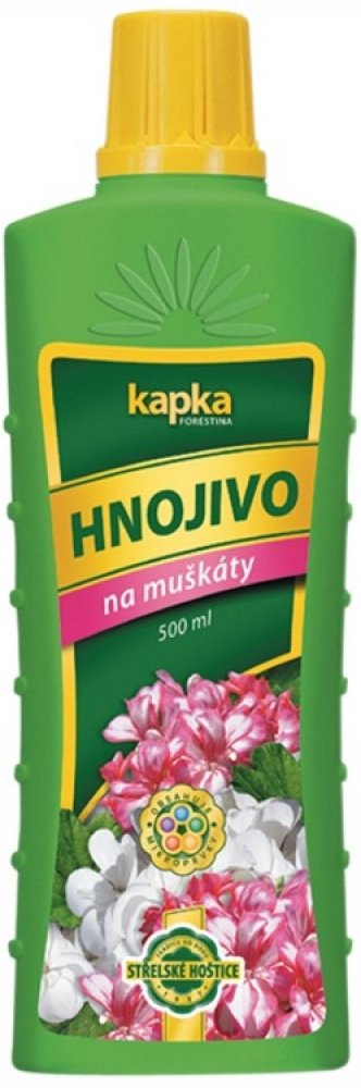 KAPKA je řada tradičních, rychle účinkujících a snadno aplikovatelných NPK hnojiv. Vyvážený poměr živin obsažených v hnojivech podporuje zdravý vývoj rostlin a zároveň přispívá k bohatému nasazení poupat, k tvorbě listové zeleně zvýrazňující kresbu listů a bohaté násadě plodů.Charakteristika:Kapalné NPK hnojivo6% N + 7% P2O5 + 6% K2OPoužití:Hnojivo je vhodné k přihnojování všech druhů muškátů (pelargonií). Podporuje tvorbu bohatého kořenového systému, bujný růst a množství květů. Obsahuje mikroprvky, které jsou důležité pro komplexní výživu muškátů. Aplikuje se na povrch zeminy zálivkou. Je také vhodné i pro listovou aplikaci, kterou se však nedoporučuje provádět na přímém slunci. Před použitím obsah lahve důkladně protřepeme. Dávkování:Roztok se připravuje smícháním 15 ml hnojiva (po okraj naplněné víčko) s 3 l vody. Při použití postřikovače (aplikace na list) smícháme 15 ml hnojiva ...