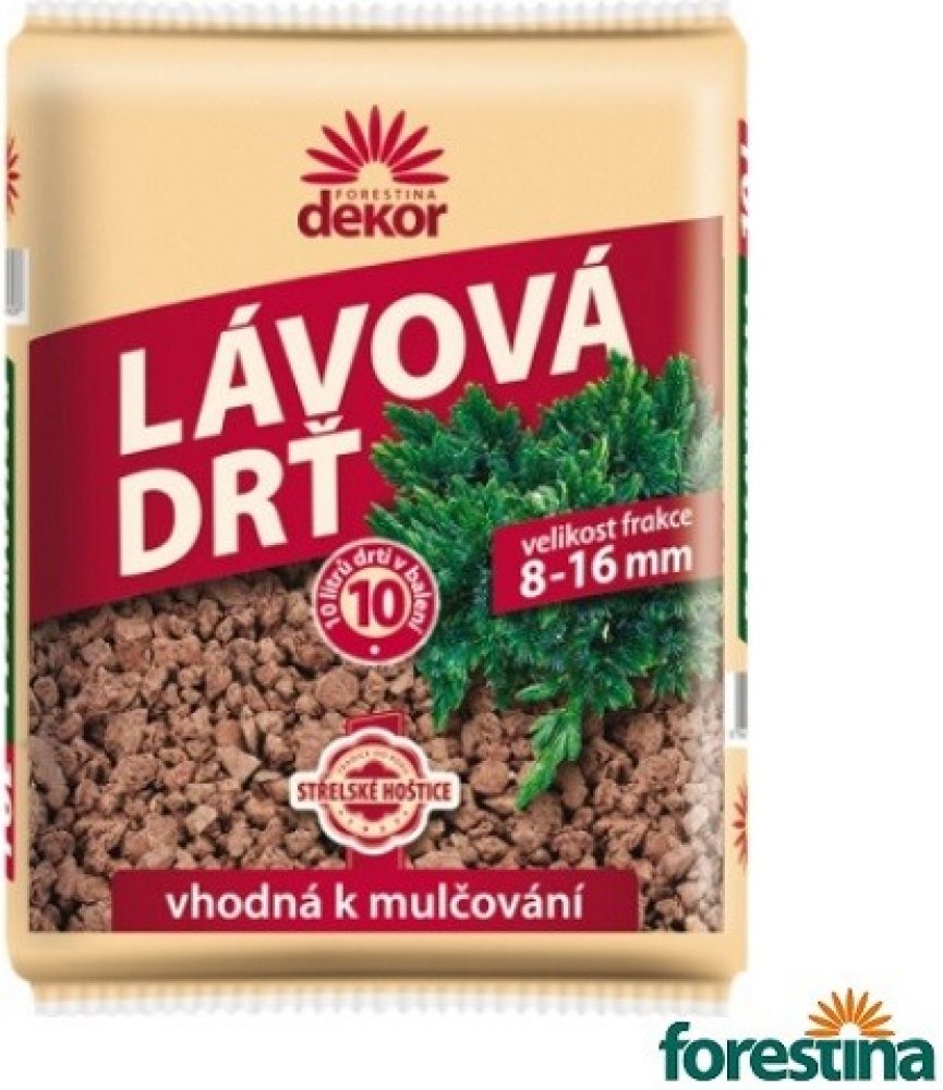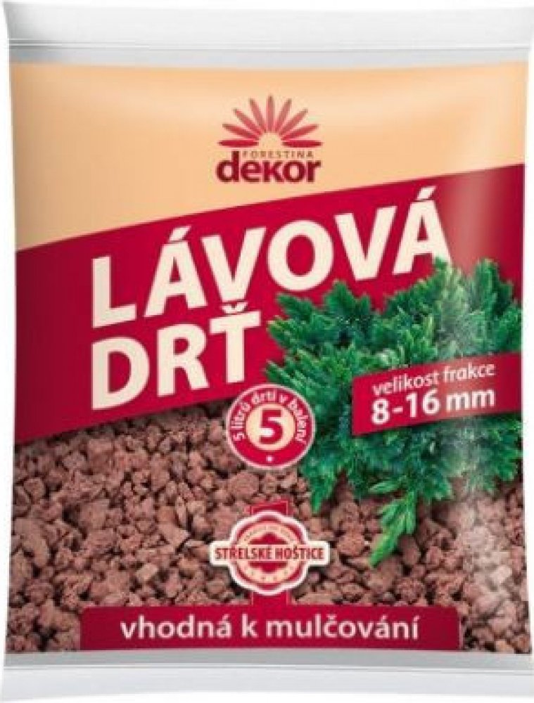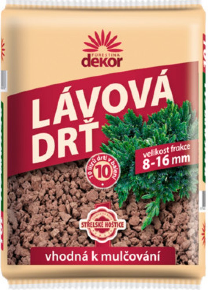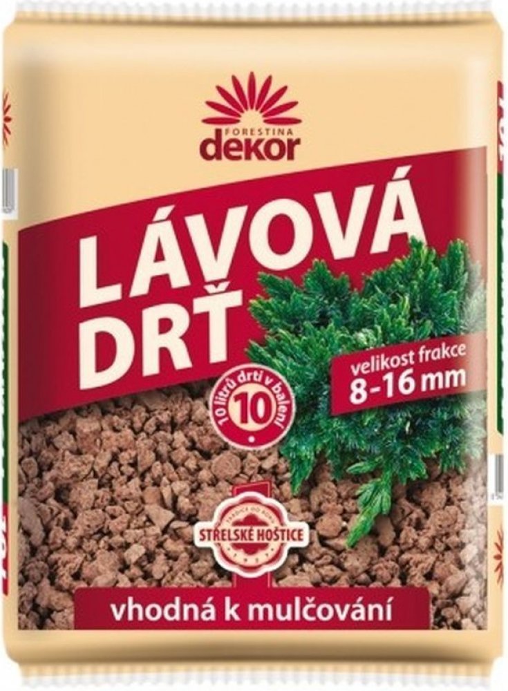 Lávová drť představuje moderní přírodní dekorační material s pozitivními účinky. Je vhodná pro okrasné zahrady, předzahrádky, ale i pro různé použiti v interieru. Je stabilní, dobře odolává nepříznivým povětrnostním vlivům, udržuje půdu svě Lávová drť představuje moderní přírodní dekorační material s pozitivními účinky. Je vhodná pro okrasné zahrady, předzahrádky, ale i pro různé použiti v interieru. Je stabilní, dobře odolává nepříznivým povětrnostním vlivům, udržuje půdu svěží, chrání ji před vysycháním. Odstraňování plevelů je tedy snadné a jejich klíčení je výrazně omezeno. Lávová drť nabízí uživateli velice atraktivní řešení při dotváření záhonků, zahradních cestiček, zákoutí a stinných předzahrádek. Použitím lávové drti je výrazně umocněn celkový příznivý dojem z okrasné zahrady či interierových květinových aranži.
