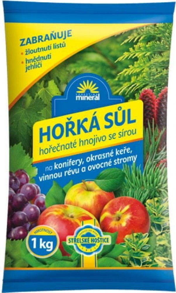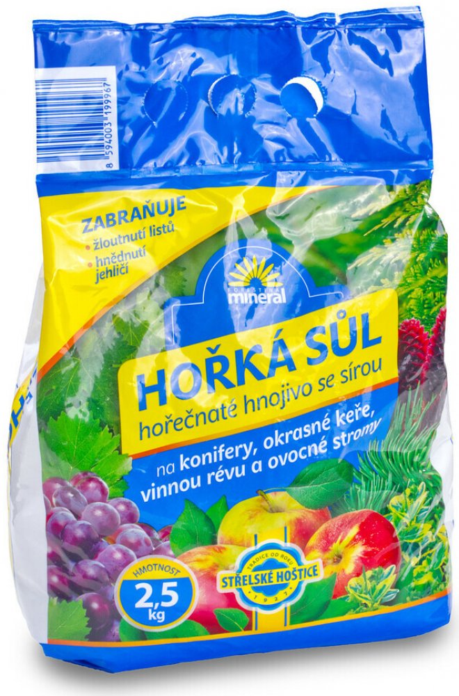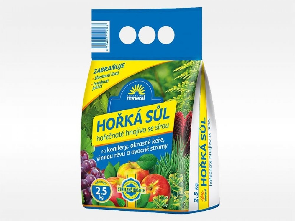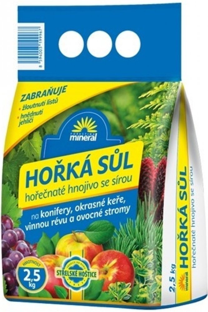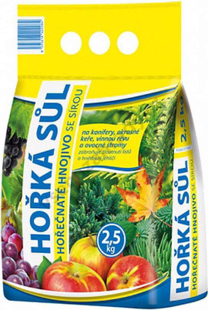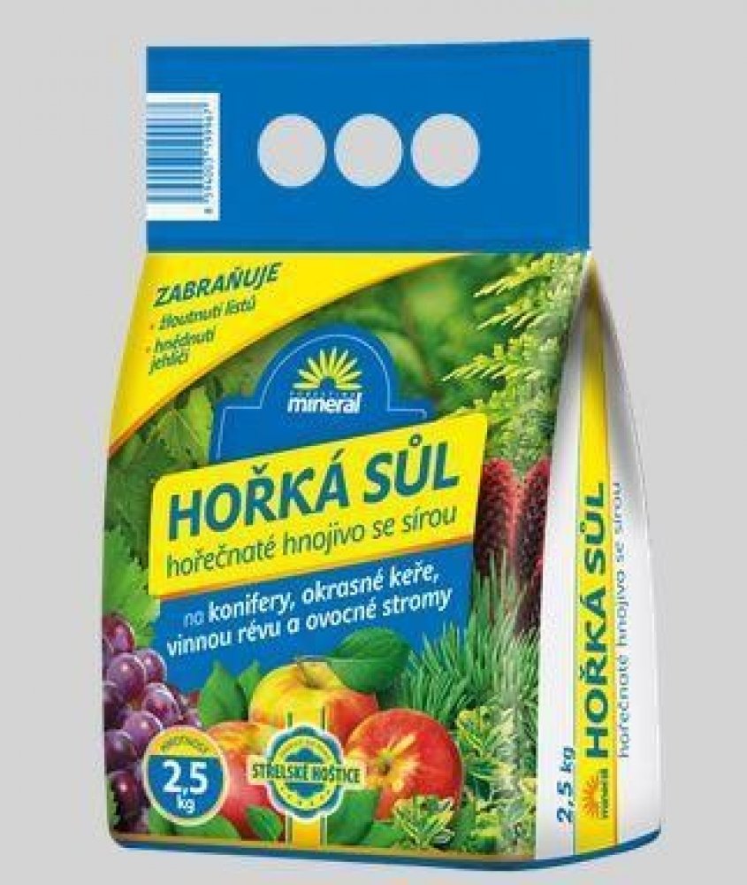 Hořká sůl - síran hořečnatý je rychle působící a bezezbytku rozpustné krystalické hnojivo s vysokým obsahem hořčíku. Hořčík je velice důležitou složkou výživy rostlin. Je stavební látkou zeleně listové - chlorofylu, která zajišťuje životně nezbytnou fotosyntézu. Při nedostatku hořčíku v půdě jsou rostliny postiženy tzv. chlorózou, která se projevuje žloutnutím listů mezi žilnatinou ( žilky zůstávají zelené ) a hnědnutím jehličí u jehličnanů. V důsledku toho se postižené rostliny nevyvíjejí správně, výnosy jsou malé, jakost plodů nízká.
