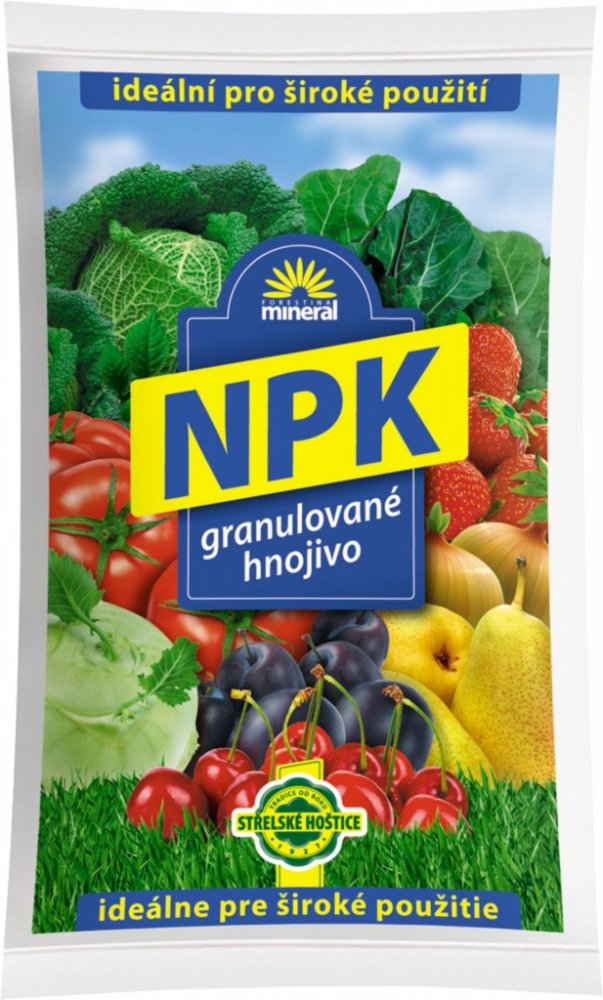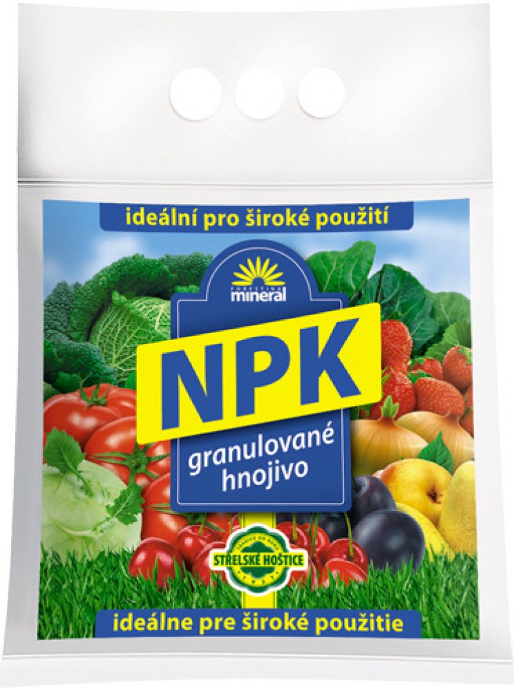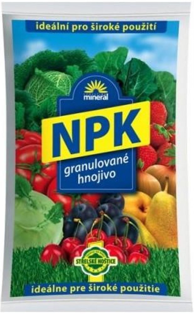 NPK je granulované směsné hnojivo. Je vyráběno z jednosložkových průmyslových hnojiv se základními živinami jako je dusík, fosfor a draslík. Hnojivo je určeno k základnímu hnojení před setím či sázením plodin. Vysokou účinnost lze očekávat na slabě kyselých a neutrálních půdách. Je vhodné pro hnojení polních plodin, zeleniny, sadů, chmelnic a vinic....
