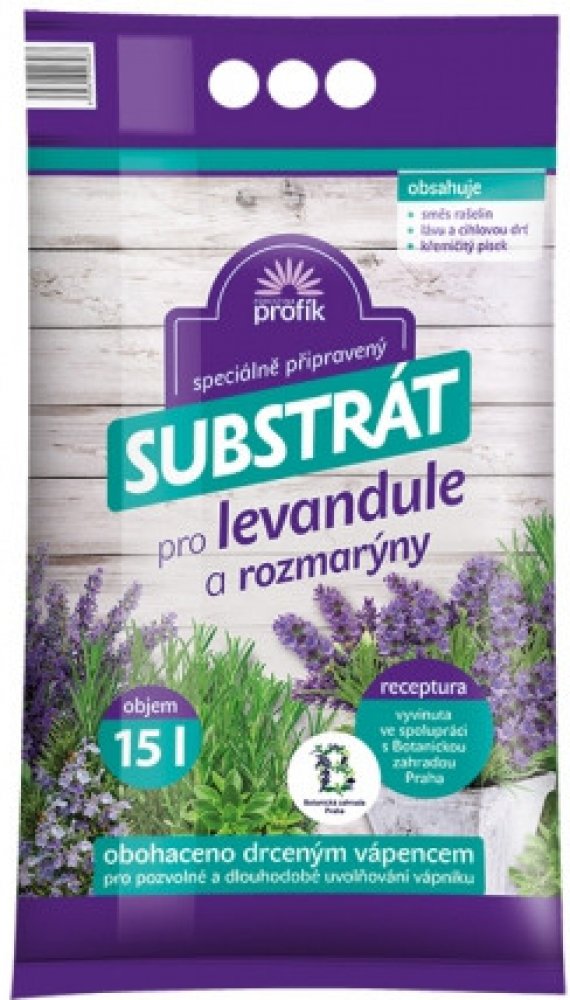 Substrát je vhodný pro levanduli, rozmarýn, šalvěj, tymián a další středomořské druhy bylinek.