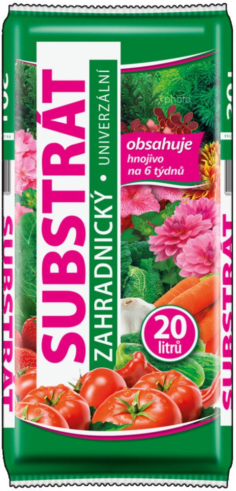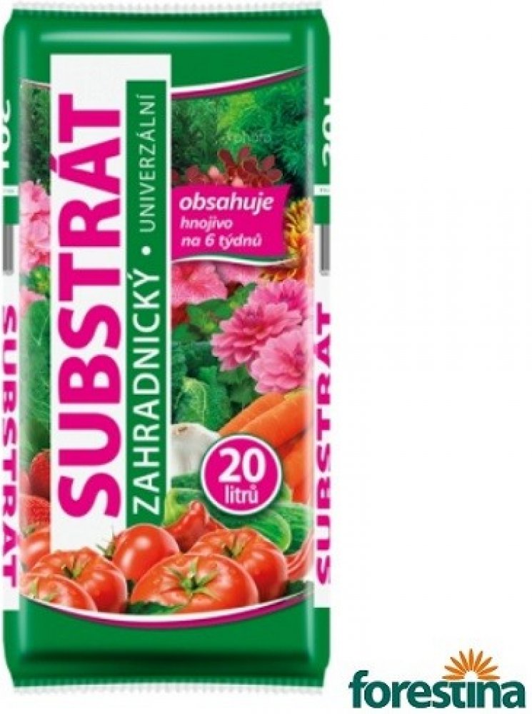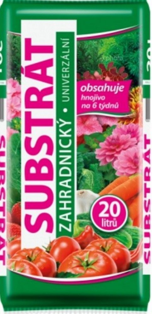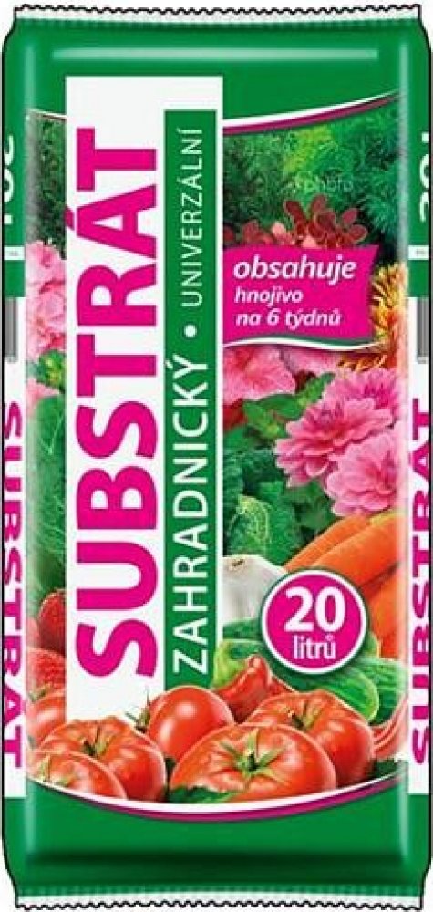 Speciální zahradnický substrát pro univerzální použití s hnojivem na 6 týdnů.Popis:Zahradnický substrát je vyroben ze směsi vytříděné světlé a černé vrchovištní rašeliny s přídavkem minerálního hnojiva NPK a kompostu. Vzhledem ke svému jedinečnému složení udržuje kyprost a vzdušnost půd a zaručuje tak dobrý růst, bohatou tvorbu kořenů a květů u všech druhů rostlin. Zadržováním slunečních paprsků umožňuje lepší využití tepla pro růst rostlin, urychluje jejich zakořeňování a přispívá k zadržování vláhy.Použití:Zahradnický substrát se používá pro sázení květin a zeleniny, výsadbu okrasných i ovocných keřů, stromů v zahradě, jakož i při sázení květin do nádob. Pro zlepšení struktury půdy můžeme substrát zapravit do půdy nebo promíchat se zeminou v poměru 1:1. Při výsadbě do nádob zakryjeme odtokové otvory kamennými střepy. Na dno nádoby nasypeme trochu substrátu, zasadíme rostlinu a přidáme další část substrátu. Lehce jej přitlačíme ke kořenovému balu a nakonec doplníme tak, aby vrchní vrstva zůstala kyprá. Při výsadbě na záhony přidáme substrát na požadovanou výšku, nebo odebereme vyčeranou půdu a nahradíme ji substrátem. Po výsadbě rostliny zalijeme. Po 6 týdnech ( po vyčerpání zásoby hnojiva v substrátu ) začneme s pravidelným přihnojováním. Není vhodný pro kyselomilné rostliny a dále pro množení rostlin a pro rostliny citlivé na vyšší obsah živin.Objem: 20l