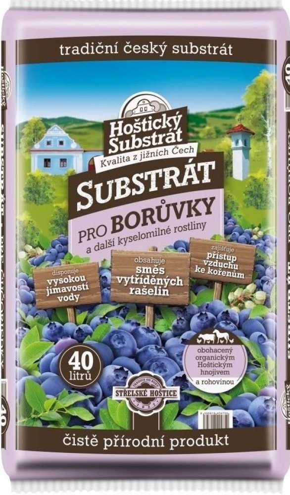 Substrát pro borůvky je připraven ze směsi vytříděné světlé a tmavé rašeliny s vhodnou kyselostí.