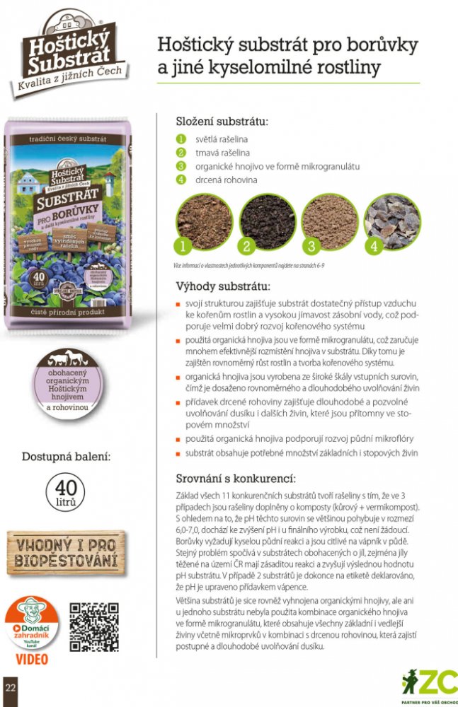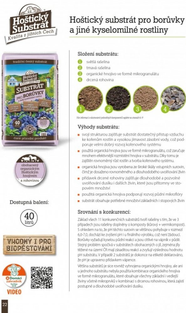 Substrát je přednostně určen pro sázení a přesazování kanadských borůvek a dalších kyselomilných rostlin.