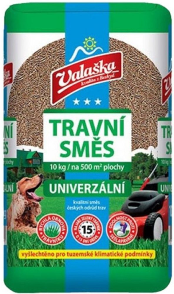 Přidání Kostřavy červené (Valaška) podporuje na jaře dřívější zelenání trávníku.Valaška travní směs Univerzální je určena pro široké využití při úpravách parkových zahrad, travních ploch na sídlištích, rekultivacích pozemků apod. Je vhodná i na opravy stávajících travních ploch.