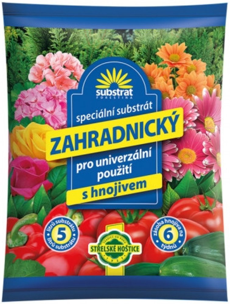 Hoštický zahradnický substrát je vyroben ze směsi světlé a tmavé rašeliny, kvalitního vytříděného kompostu a obsahuje minerální vícesložkové hnojivo CERERIT. Vzhledem ke svému jedinečnému složení udržuje kyprost a vzdušnost půd a zaručuje tak dobrý růst, bohatou tvorbu kořenů a květů u všech druhů rostlin. Zadržováním slunečních paprsků umožňuje lepší využití tepla pro růst rostlin, urychluje jejich zakořeňování a přispívá k zadržování vláhy. Zahradnický substrát se používá k sázení květin a zeleniny, výsadbu okrasných i ovocných stromů a keřů do volné půdy i do nádob. Obsahuje potřebné množství základních i stopových živin na prvních cca 6 týdnů pěstování.