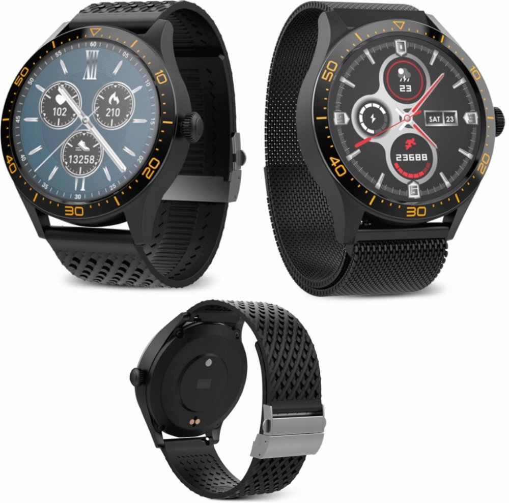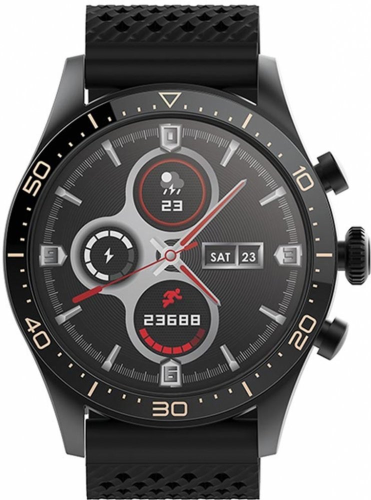 Hodinky nabízejí několik sportovních režimů – běh, chůze, jízda na kole a turistika. Pokud dbáte na zdravý životní styl, jistě oceníte také měření srdečního tepu, monitoring spánku, odhad spálených kalorií a krokoměr. Skvělou vychytávkou je notifikace z mobilního telefonu, díky nimž uvidíte na hodinkách každou novou SMS či zprávu z Facebooku. Displej má rozlišení plných 360 x 360 pixelů. Řemínek je vyroben z kvalitního silikonu. Pro maximální využití funkcí, propojte hodinky pomocí bluetooth se svým smartphonem. Můžete si tak např. přizpůsobit vzhled hodinek. funkce: krokoměr monitorování srdečního tepu notifikace z mobilního telefonu Phone Finder předpověď počasí měření tělesné teploty tréninkové funkce - chůze, běh, jízda na kole, turistika budík monitorování spánku relaxační režim (dechový trénink) změna motivu ciferníku odhad spálených kalor iOS 10.0 Bluetooth 5.0 aplikace GoFit.
