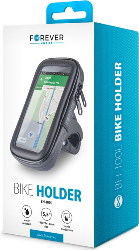 FOREVER BH100L; Držák na kolo s otočným a vodotěsným pouzdrem na telefon je skvělou pomůckou pro milovníky cyklistiky. Průhledná folie pouzdra dovoluje rychlé ovládání zařízení s dotykovým displejem. Silný... FOREVER BH-100L