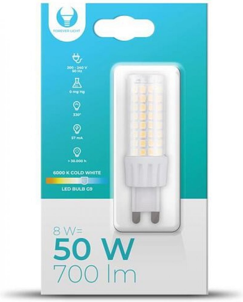 studená barva 6000 K A+ Forever Light LED žárovky 25000 h 700 lm G9 230 V